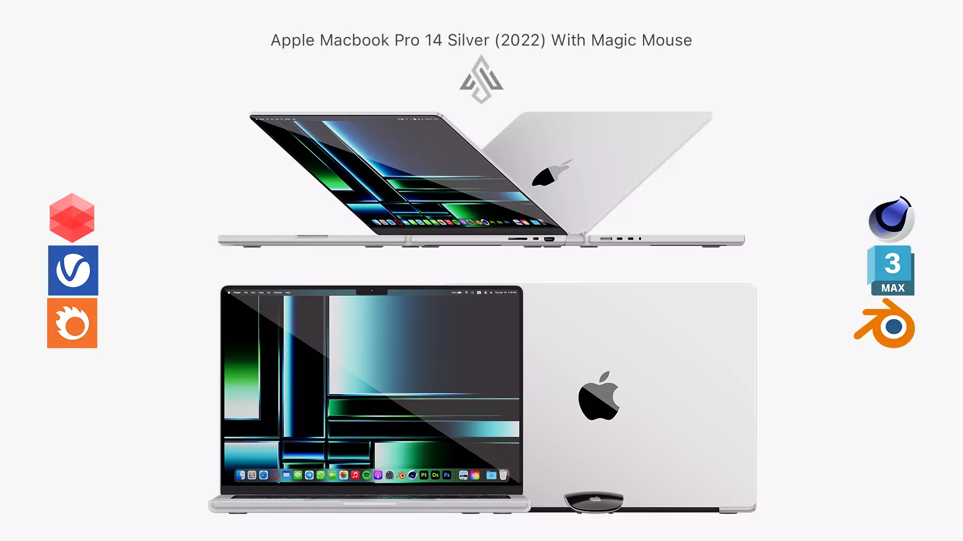 This 3D model is based on dimensions of “ Apple MacBook Pro 14 Silver (2022) & Apple Magic Mouse”.