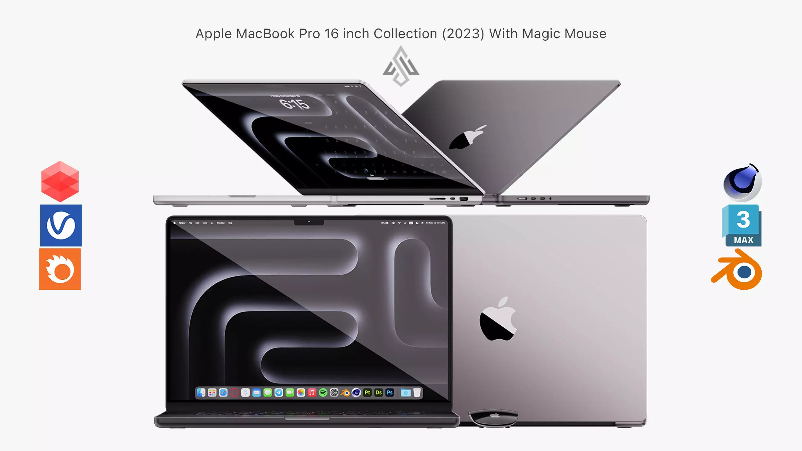 This 3D model is based on dimensions of “ Apple MacBook Pro 16 inch Collection (2023) & Apple Magic Mouse”.