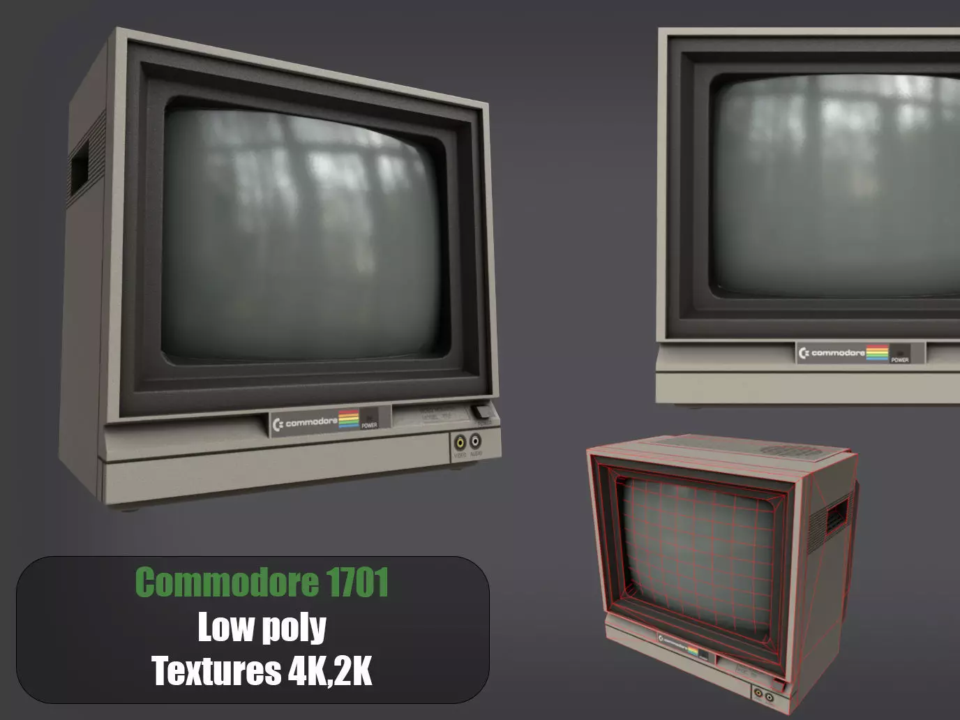 A game-ready 3D model Monitor Commodore 1701, Originally created with Blender 4.2, the texture and material are already packed into the .blend. Model has clean and neat topology and geometry Model has neat UV map 2k texture