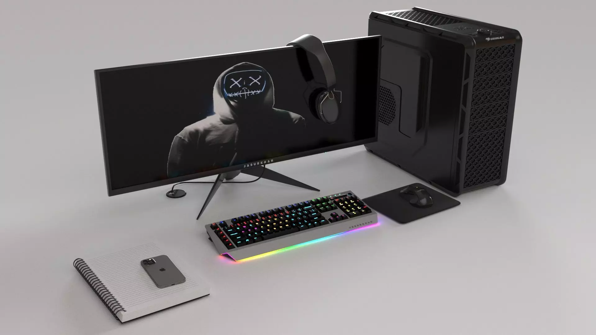 The model has material settings that define how surfaces look (color, shine, transparency, etc.).
