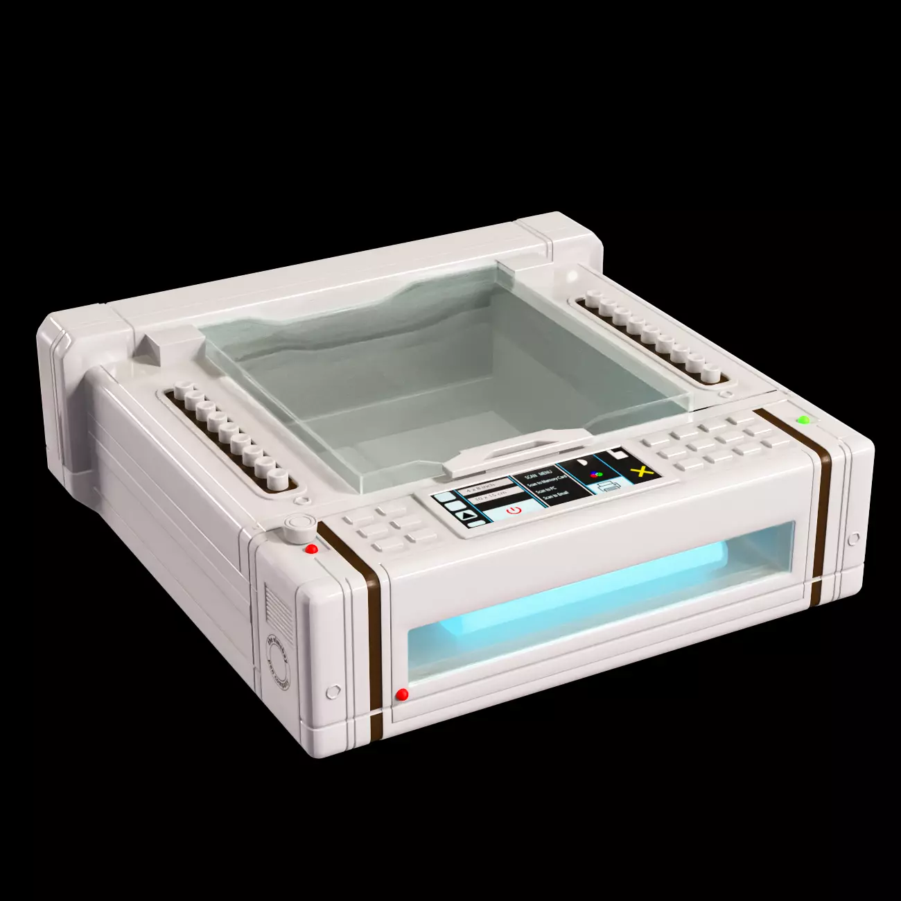 Elmsbay ScannerPackaged in durable plastic, this product is easy to use and store. The packaging a vibrant cream white color scheme. It was modelled using Blender 3.4 and rendered with Cycles X. Texture files are PBR metallic/ Roughness workflow with Base Color, Roughness, Metallic, Emissive, Transmission/ Opacity and Normal maps. Depending on the software used any Transparent object uses the Transmission (the texture map values should be inverted in this case) or Opacity texture file. All texture files are in PNG format. It has 1 materials based on 2048 x 2048 PBR textures. The model consists of 1 object. The file formats available are FBX, OBJ, glTF and ofcourse Blender which is the native format. The model is made of polygon meshes with very few triangles.
