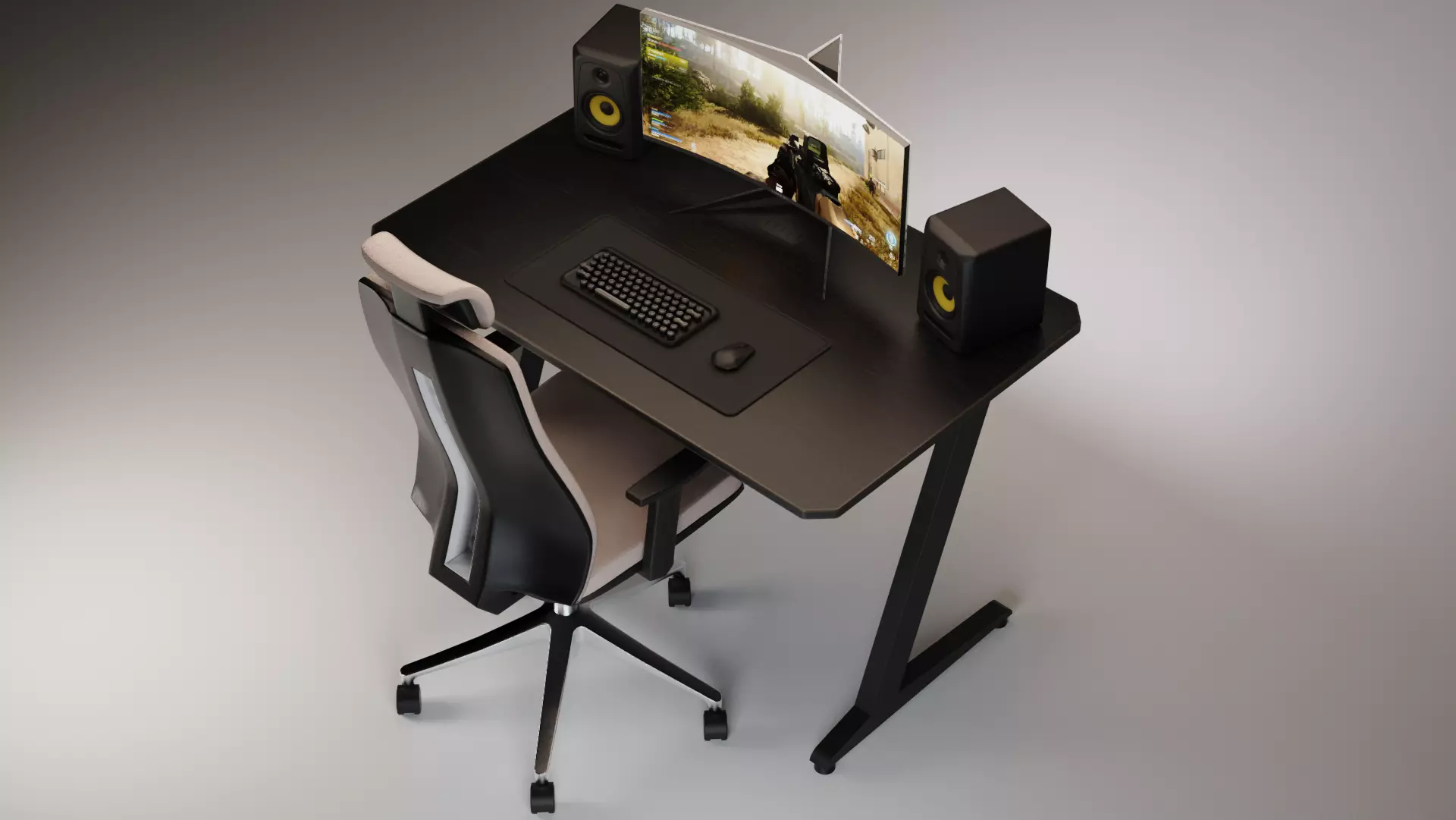 This 3D model pack is the perfect solution for anyone looking to create a professional office scene. It includes a detailed desk, high-quality audio monitors, a curved HD monitor, a keyboard, mouse, pad, and an ergonomic chair - everything you need to set up a productive workspace.