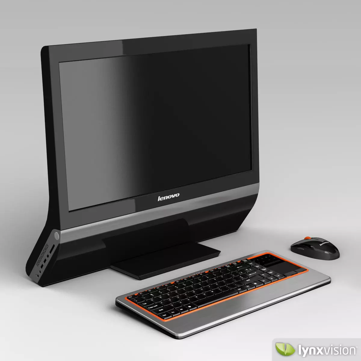 High quality model of the Lenovo A-Series All In One desktop computer. Keyboard and mouse models included.