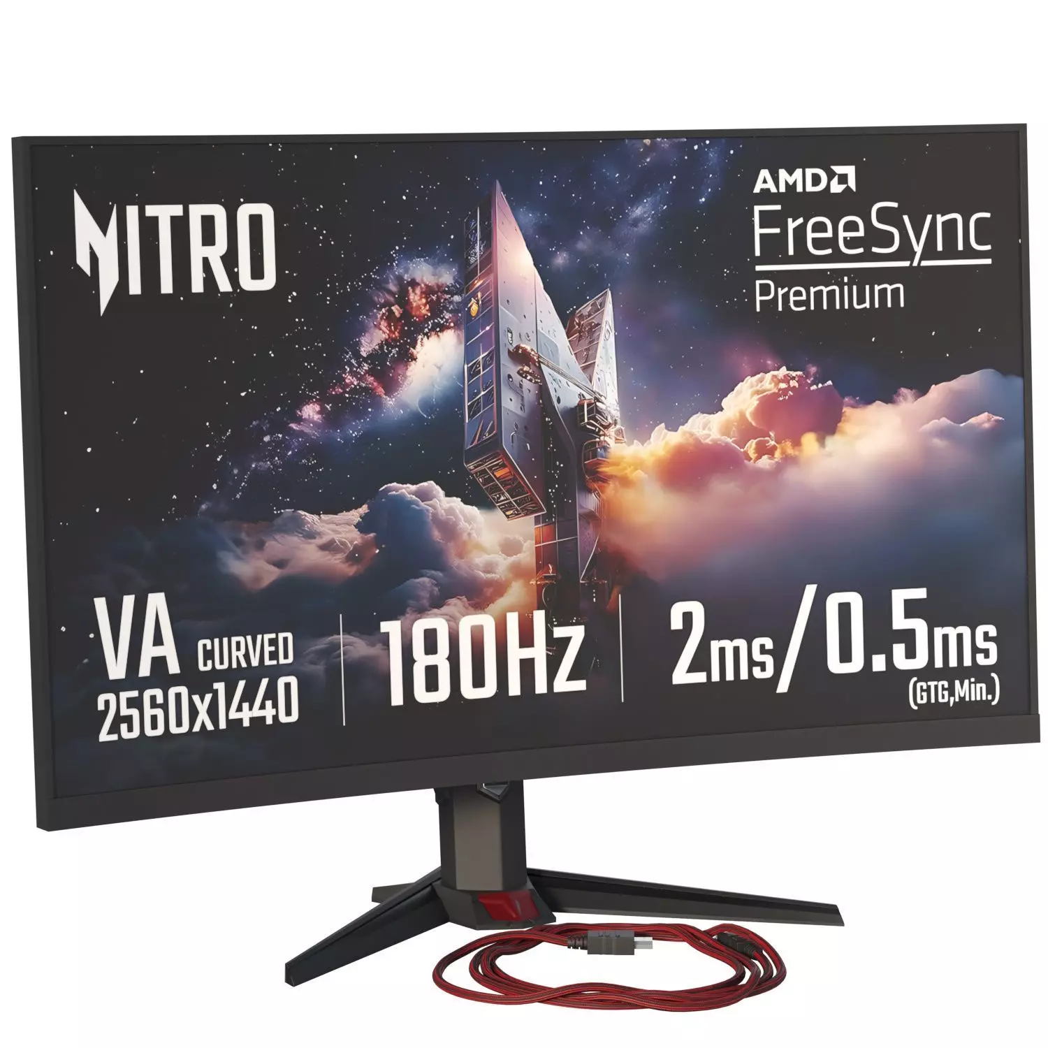 Curved Gaming Monitor 3D Model – Acer Nitro 2560x1440, 180Hz, FreeSyncDescription:High-quality 3D model of a curved gaming monitor inspired by the Acer Nitro series.This model is ideal for game environments, product visualization, animations, and tech-related scenes.The monitor features a sleek modern design with a curved VA panel, gaming-focused aesthetics, and detailed rear I/O ports.