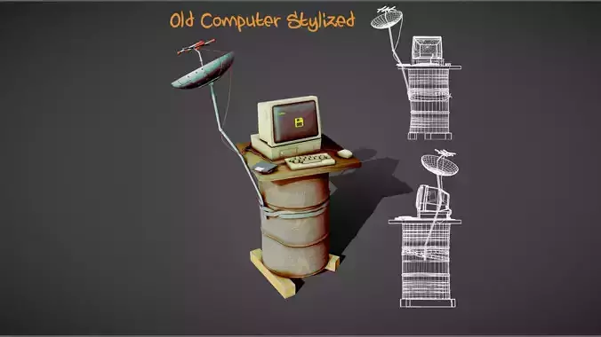 Old Computer Stylized Low-poly 3D model