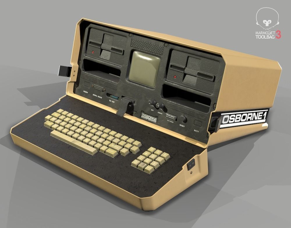 A unique model of the retro computer Osborne 1 created in 3d max and consists of 2 444 polygons, 4 401 triangles, 2 558 vertices. A competent UV-mapping was performed in RizomUV, overlaps were not used. The model was baked in Marmmoset and then textured in Substance Painter. Normal Map Format: OpenGL. At the output we have 16-bits 4k PBR textures: BaseColor, Normal, Height, Metallic and Roughness. The screenshots were rendered using the Marmoset Toolbag 3.08 engine. You can also see the 3D model in the Marmoset Viewer, right on this page. The optimized low-poly mesh of the 3D model with detailed texture allows it to be used both in undemanding games and in close-ups. The pivot point is aligned in the correct position and the model is ready to be imported into your scenes. As a bonus, you will receive a scene configured for rendering in Marmoset Toolbag 3.08.