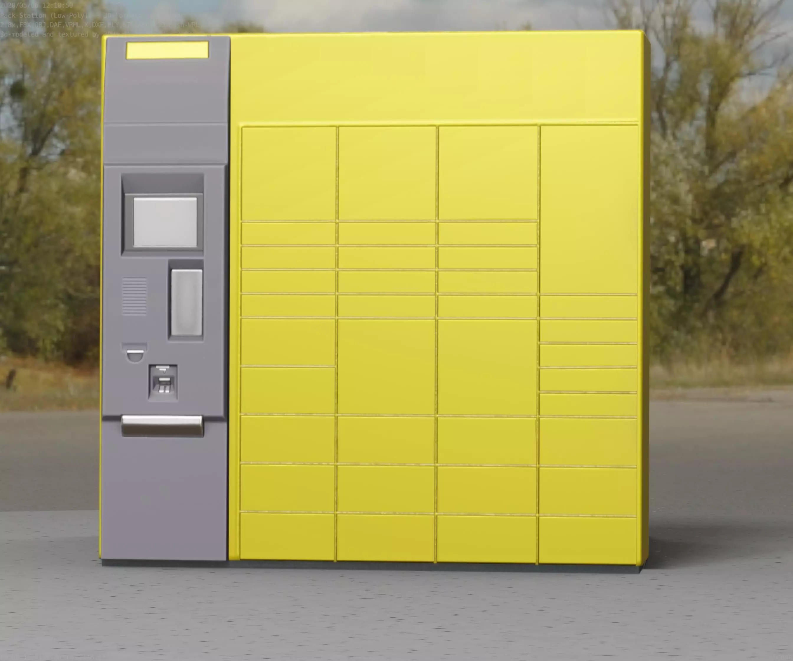 Here is a yellow packstation with touchpad interface. Part 3 out of our packstation collection.**https://www.cgtrader.com/gallery/project/pack-station-low-poly-package