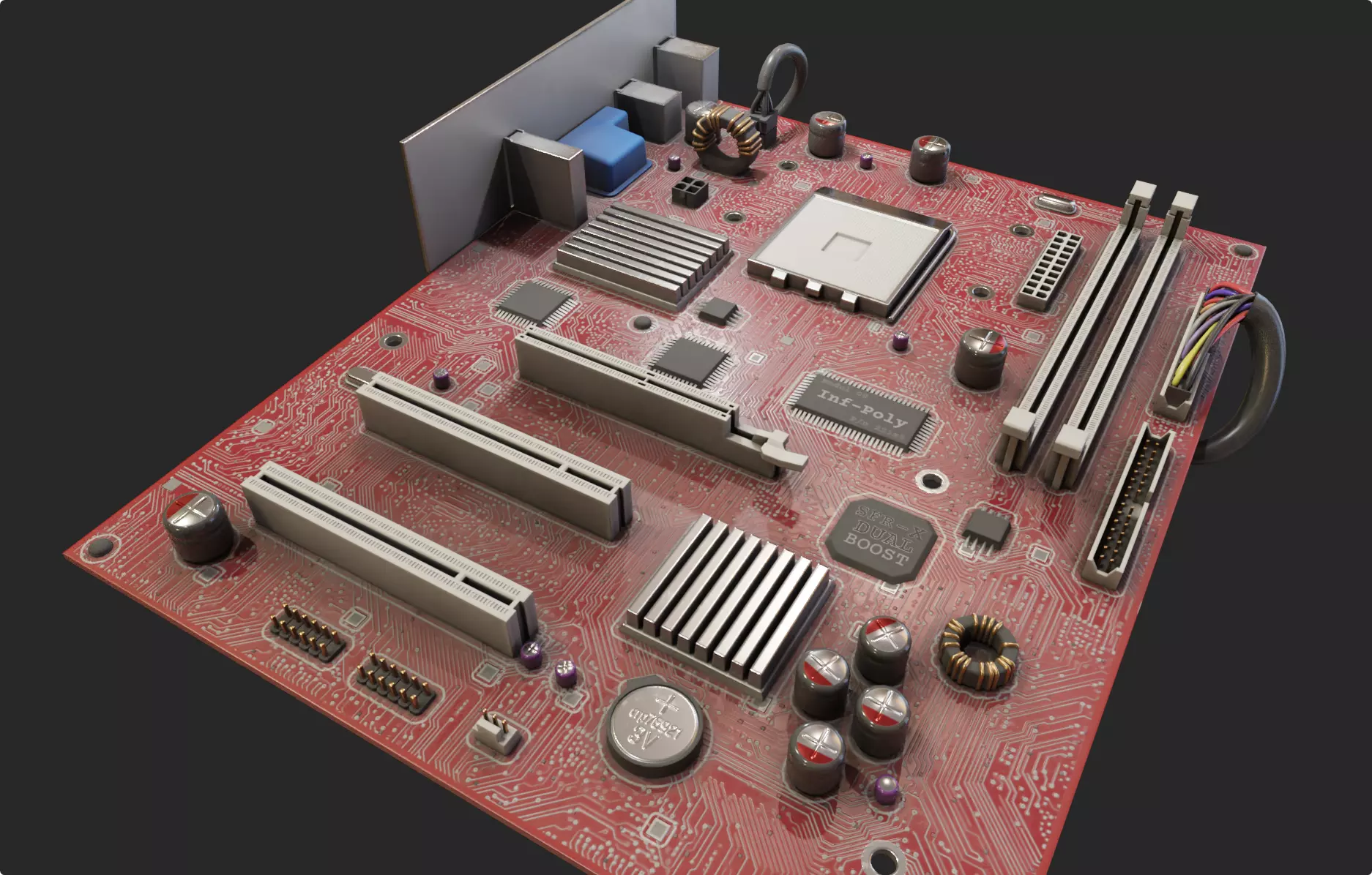 pc motherboard agp computer retro red circuit board Low-poly 3D model