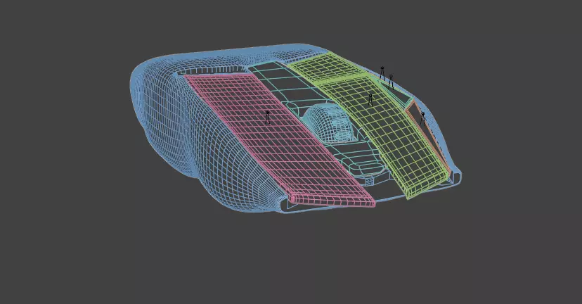 The model has material settings that define how surfaces look (color, shine, transparency, etc.).