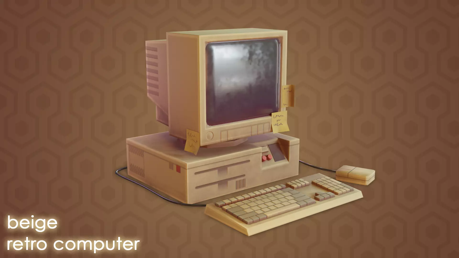 Contains a retro computer set-up in 3 color variations (beige / white / black)
