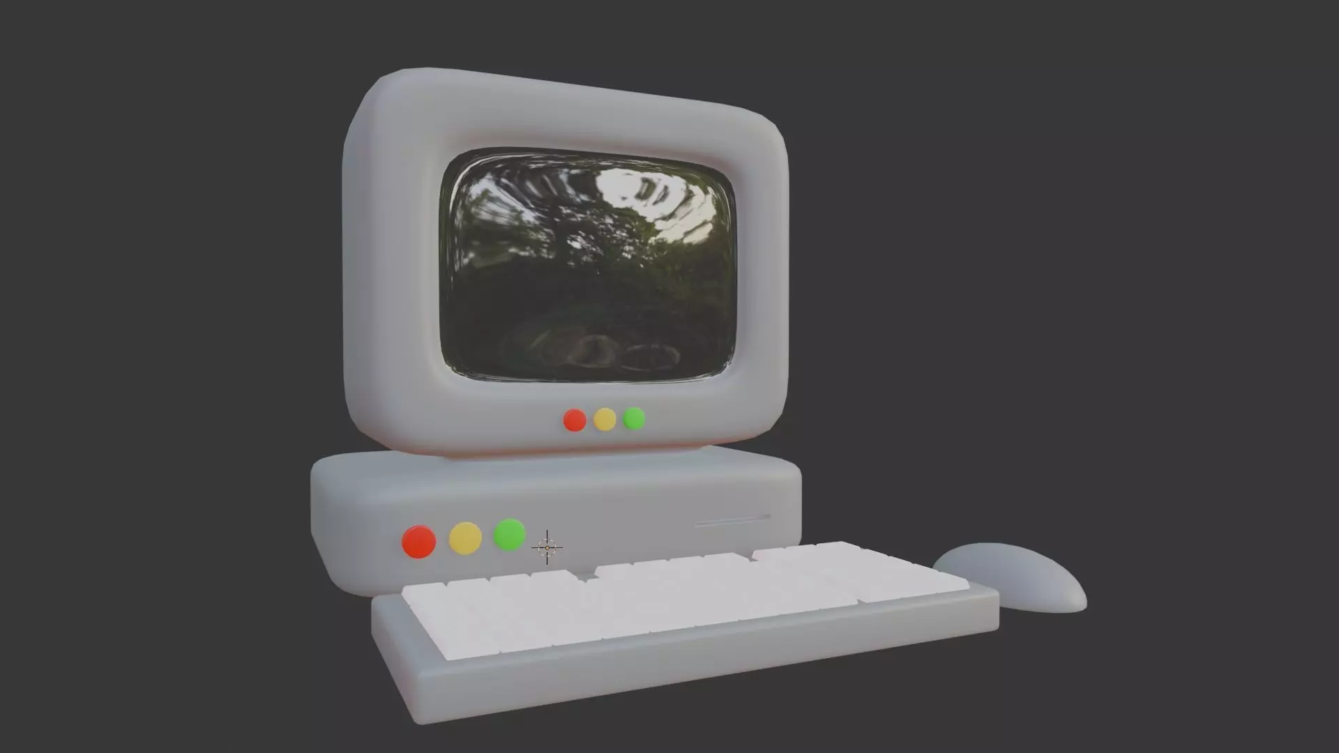 This 3D model showcases a cute retro-style computer with smooth, soft-edge geometry and a stylized CRT monitor. The screen features a glossy reflective surface, and the device includes colorful function buttons on both the monitor and the CPU base. The model also comes with a simple keyboard and rounded mouse, matching the same soft aesthetic.Polygon Count: 12,224Vertices: 12,098Native Format: .blendPBR Textures Included: No