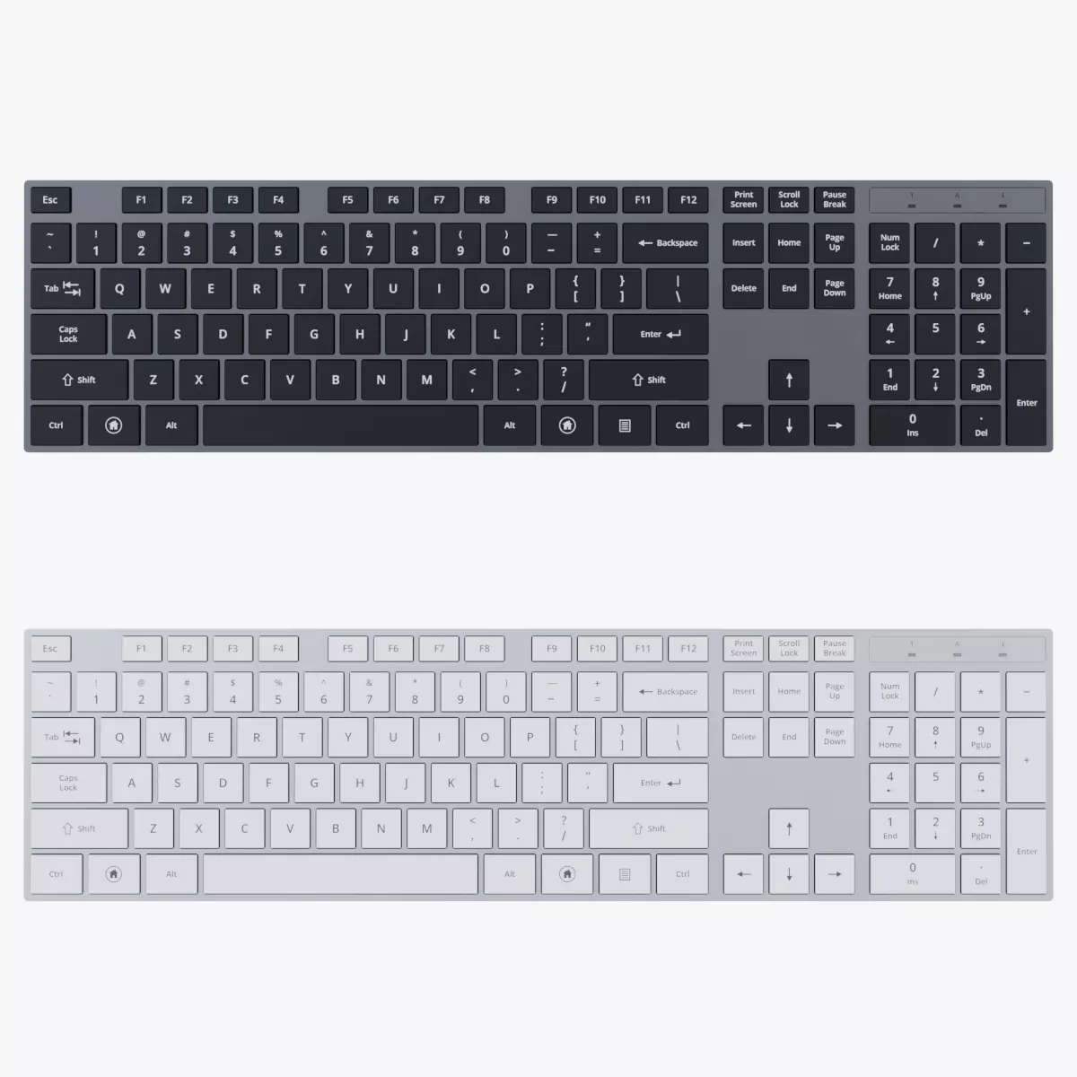 Low poly slim wireless Computer Keyboard(2 colors included - gray and silver).