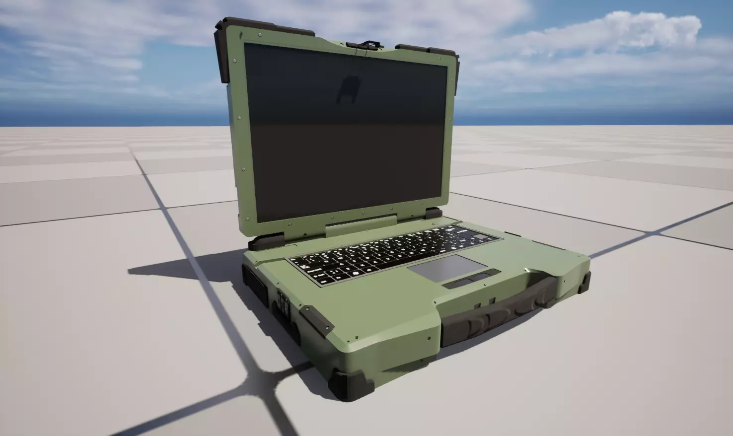 3D model of a toughbook. A toughbook is a rugged laptop designed to withstand vibration, drops, spills, extreme temperature, and rough handling.
