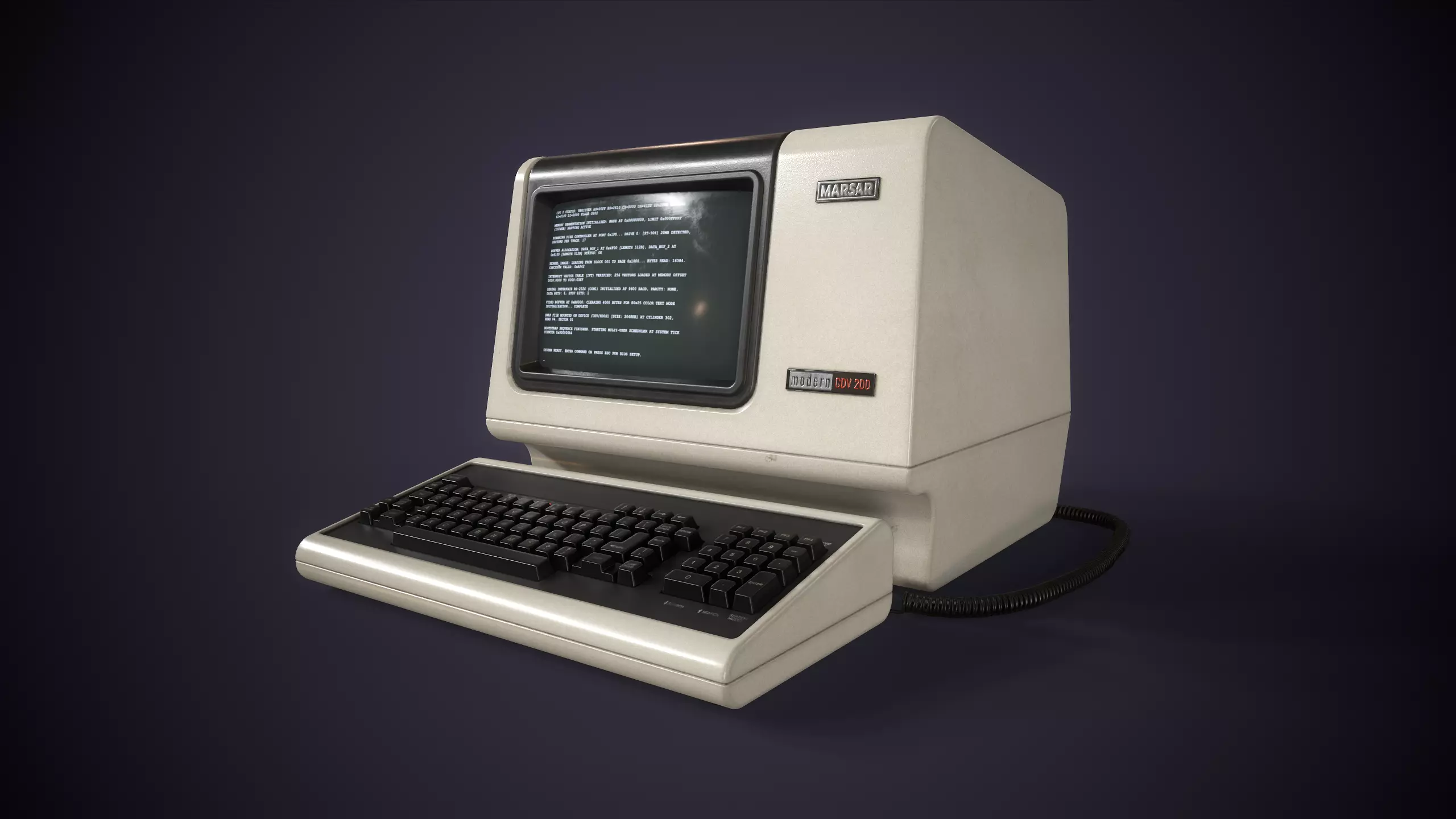 The coiled cable is a separate object, allowing the terminal to be used with or without it. Ideal for retro office, laboratory, or bunker environments.