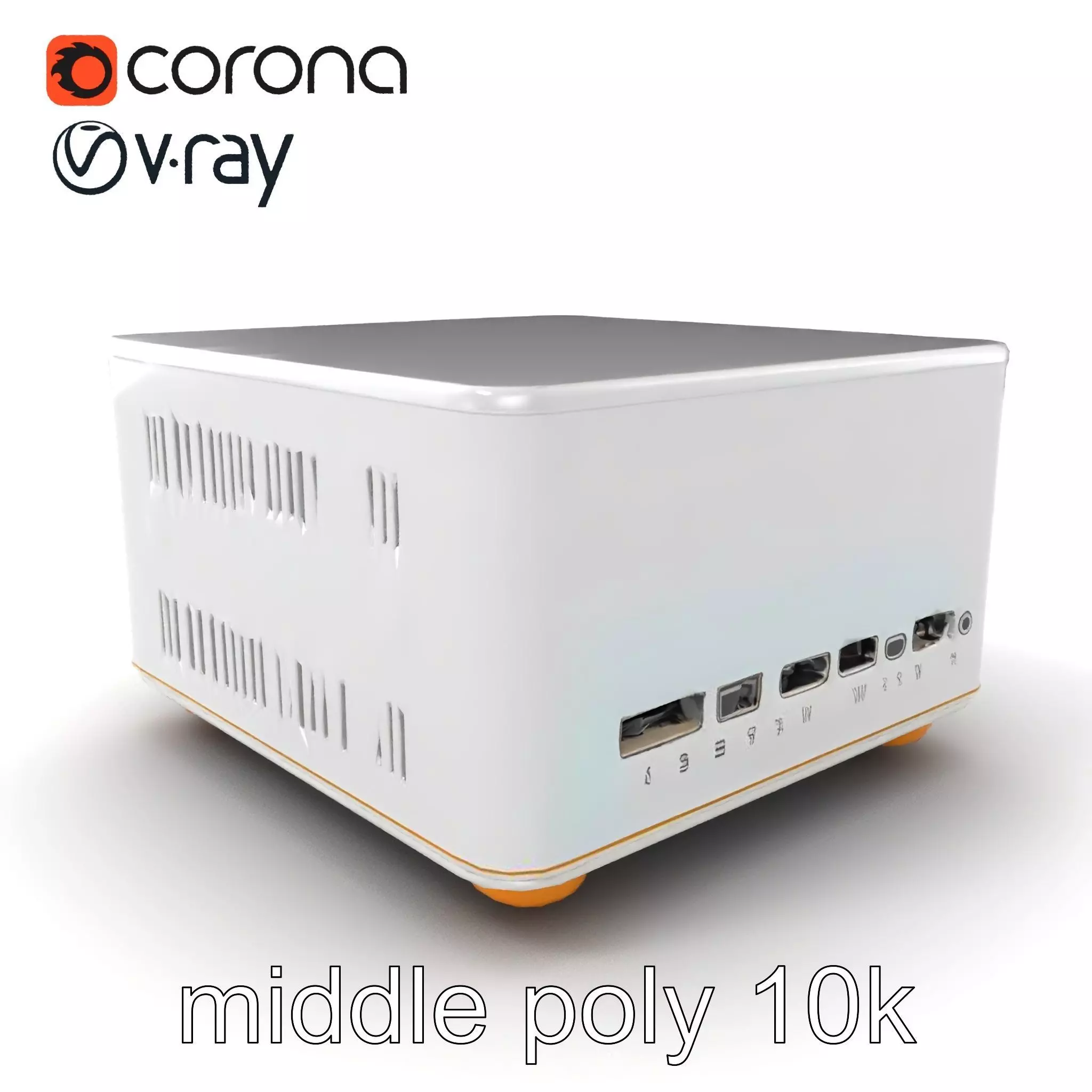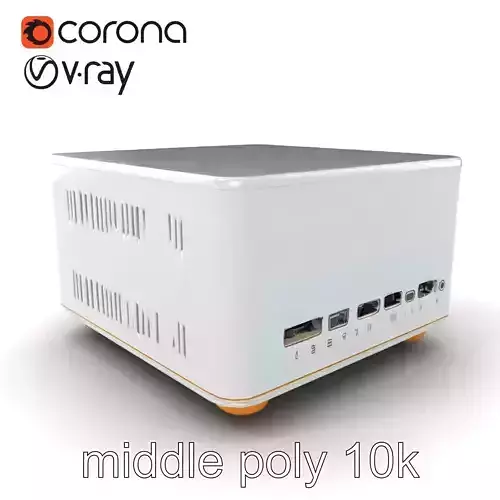 This sleek white Mini ITX PC case model is perfect for designing compact and cost-effective computer setups. Ideal for creators looking to visualize minimalist and modern home setups, its open mesh design and gold highlights are both stylish and functional.