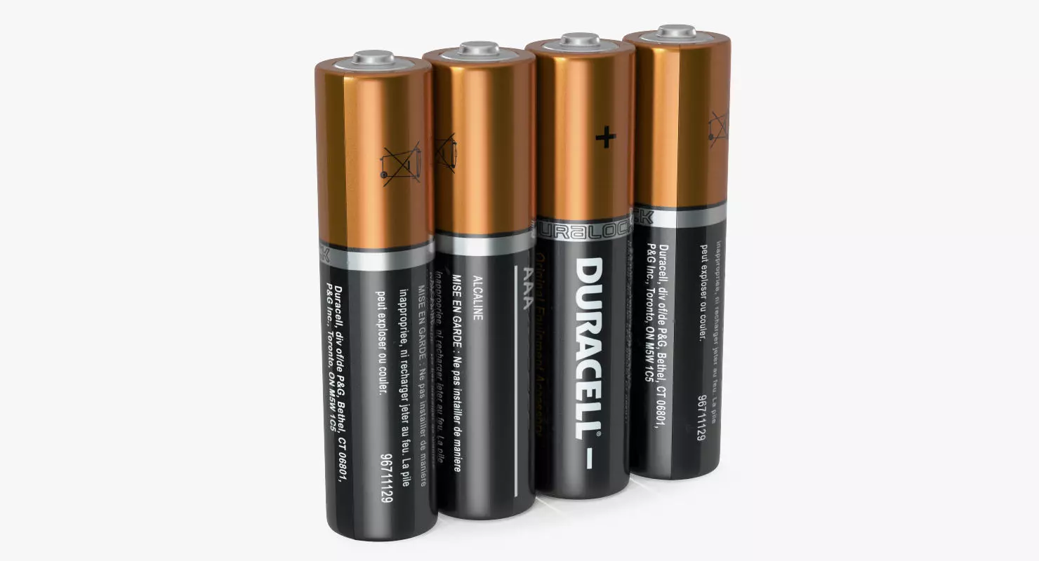 AAA Four Duracell Alkaline Battery 3D Model is a high quality, photo real 3d model that will enhance detail and realism to any of your rendering projects. The model has a fully textured, detailed design that allows for close-up renders, and was originally modeled in 3ds Max 2012 and rendered with V-Ray. Renders have no postprocessing.Hope you like it!
