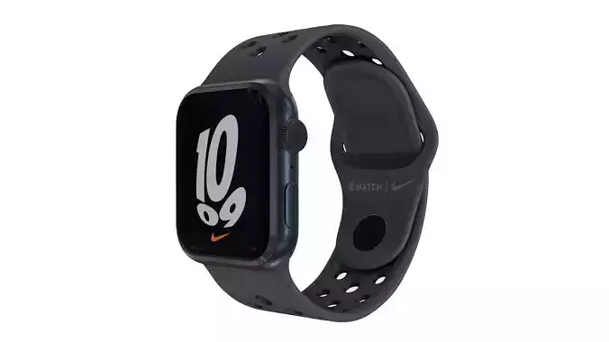Apple Watch 7 - Silver Stainless Steel Case Midnight Sport Band Low-poly 3D model