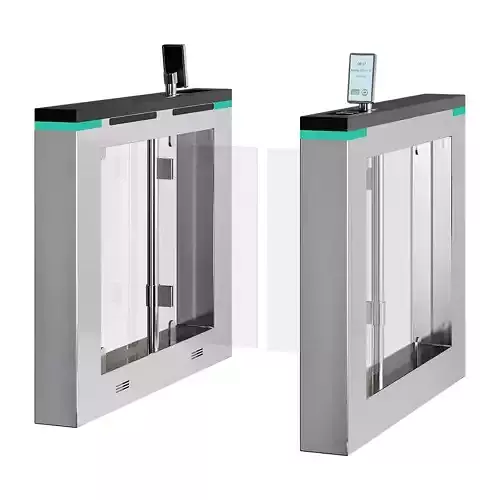 A speed turnstile with hybrid biometric identification. It consists of two end sections with hinged acrylic doors and two SpeedFace-V4L Pro-RFID [EM] facial recognition terminals with brackets for installation on the turnstile. This kit is designed for access control and time and attendance monitoring for a single access point in both directions.