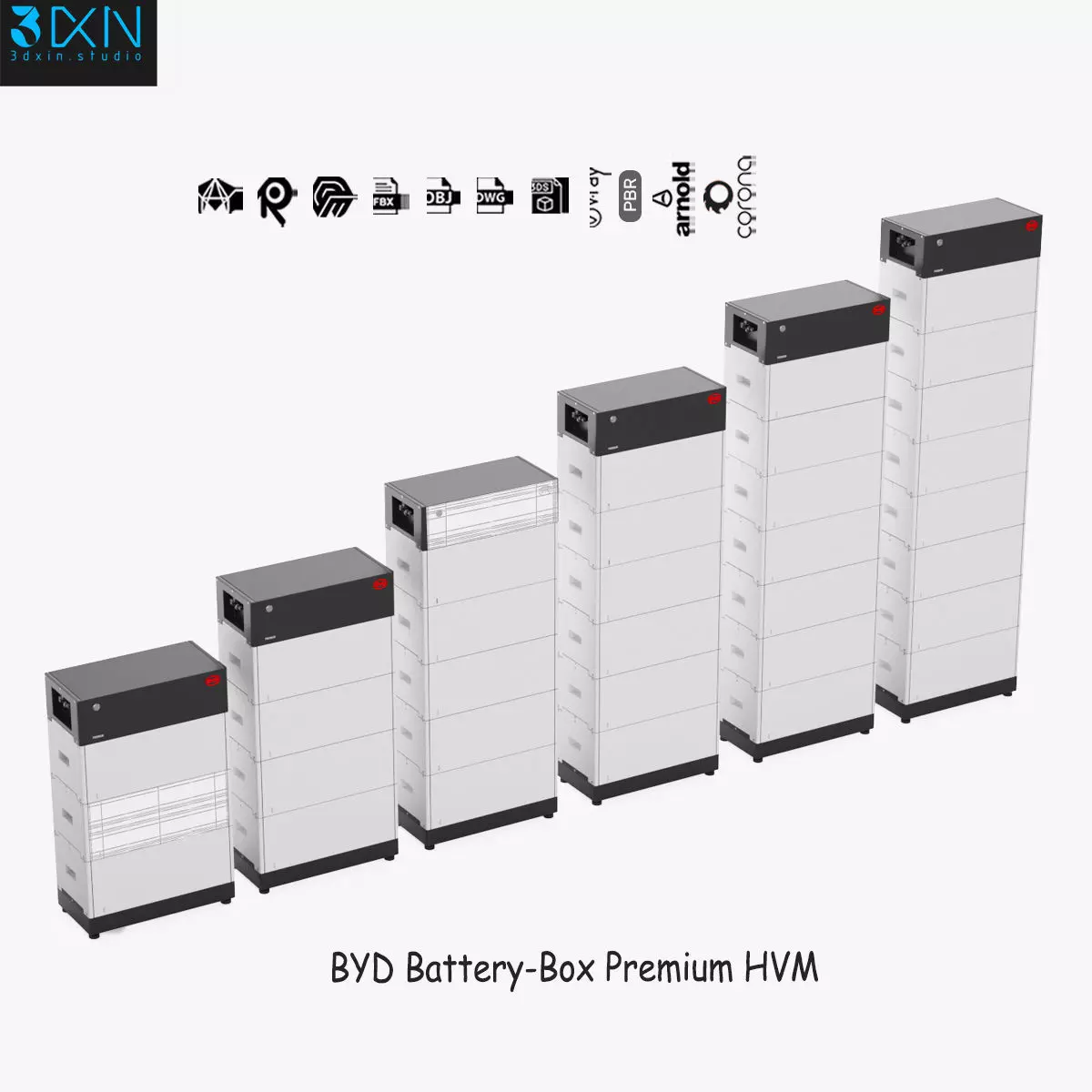 BYD Battery-Box Premium HVM is a high quality, photo realistic 3d model that will enhance detail and realism to any of your rendering projects. The model has a fully textured, detailed design that allows for close-up renders, and was modeled in 3ds Max 2018 also has 3ds Max 2015 version and rendered with V-Ray. Renders have no post-processing.