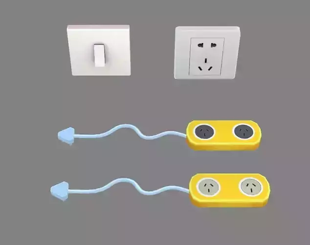 Cartoon Switch and Sockets Low-poly 3D model