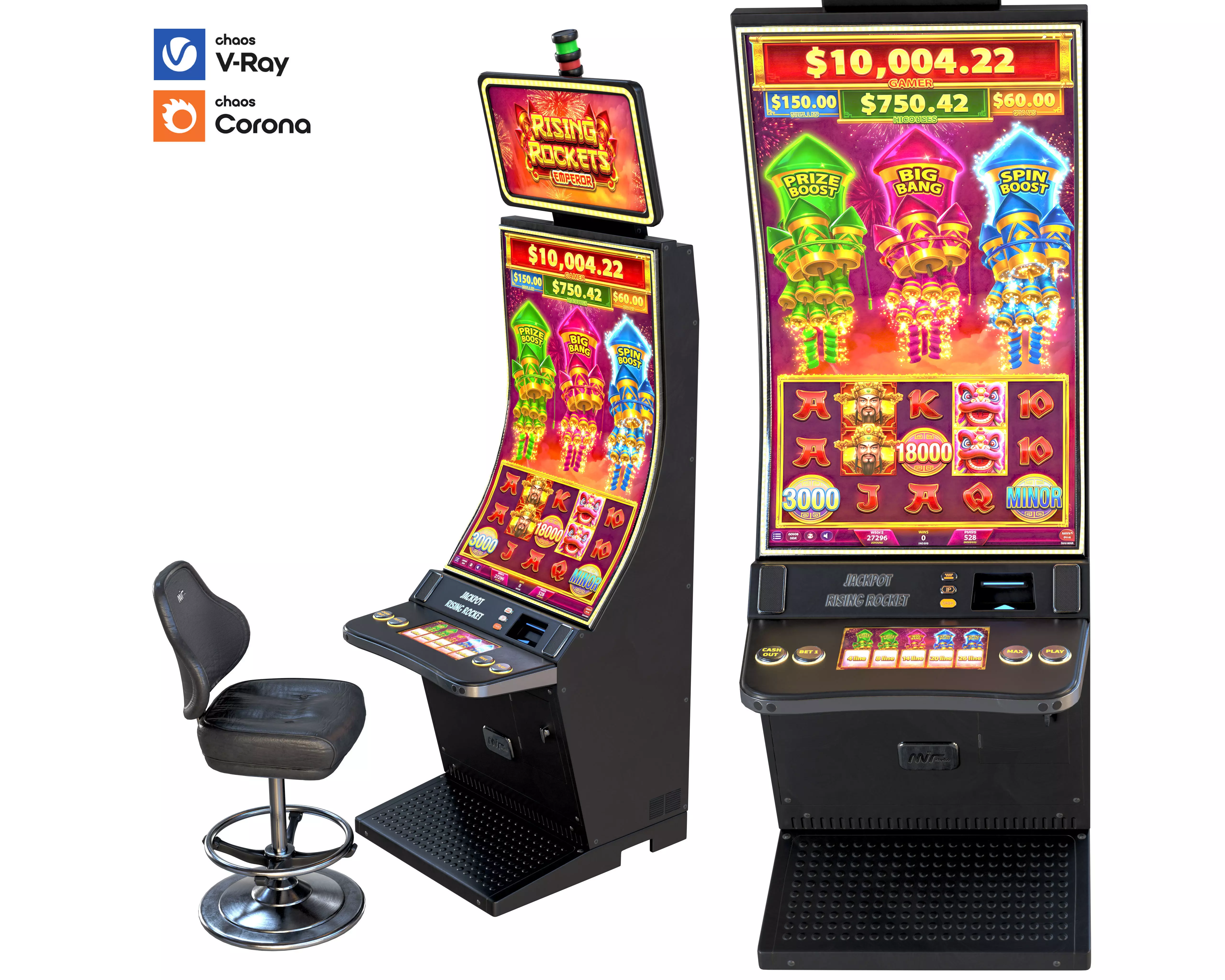High-quality casino slot machine and chair 3D models