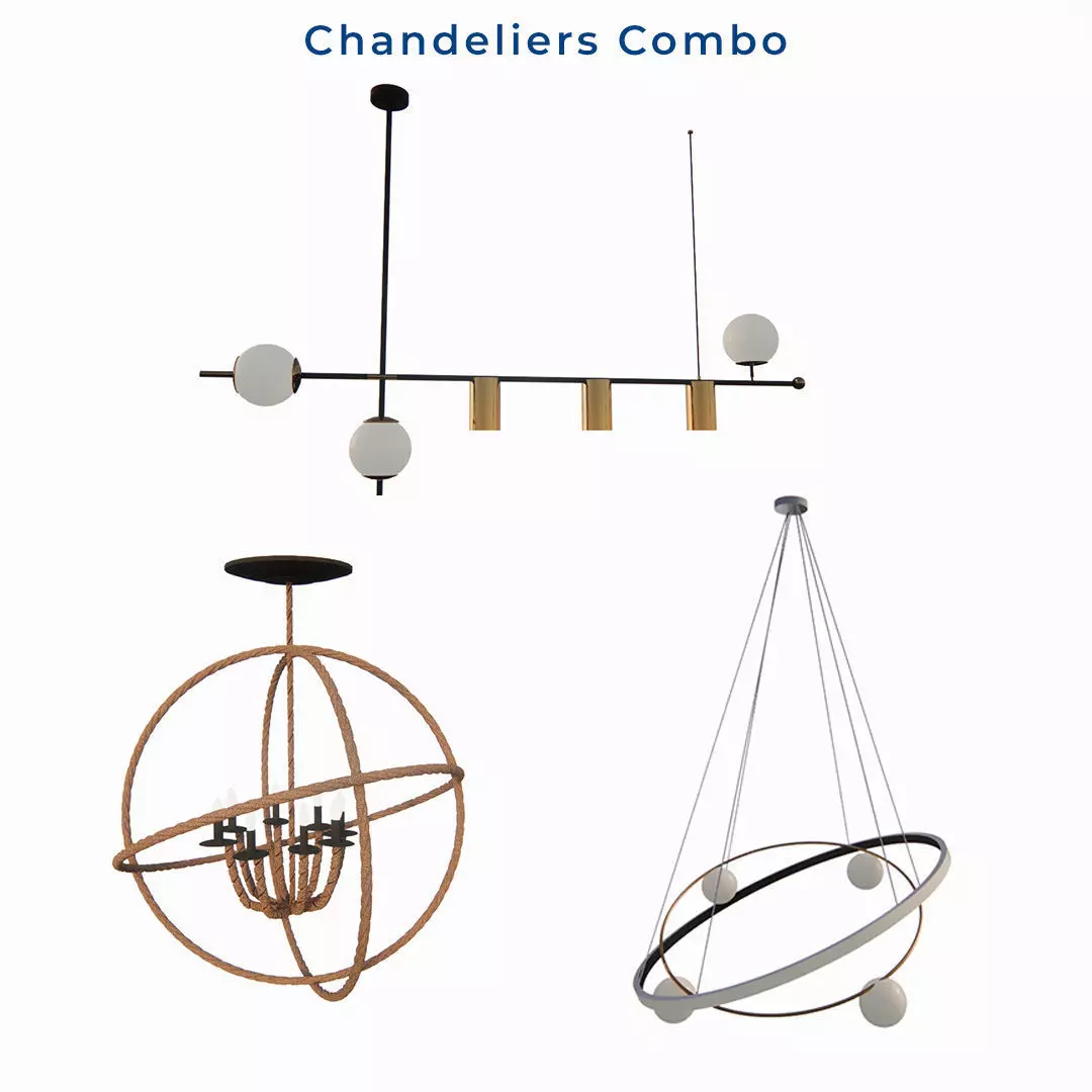 A Collection of 3 beautiful Chandeliers. Modern and contemporary chandeliers 3d with render-ready materials.
