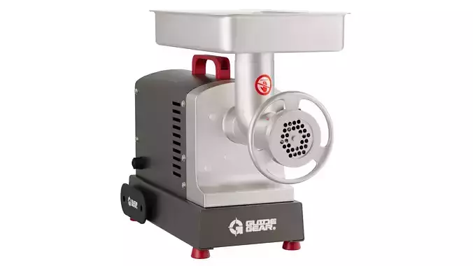This commercial-grade electric meat grinder 3D model is a realistic and production-ready asset suitable for professional food processing scenes.The model features a robust metal body, stainless steel grinding head, feeding tray, ventilation slots, safety markings, and industrial design proportions.