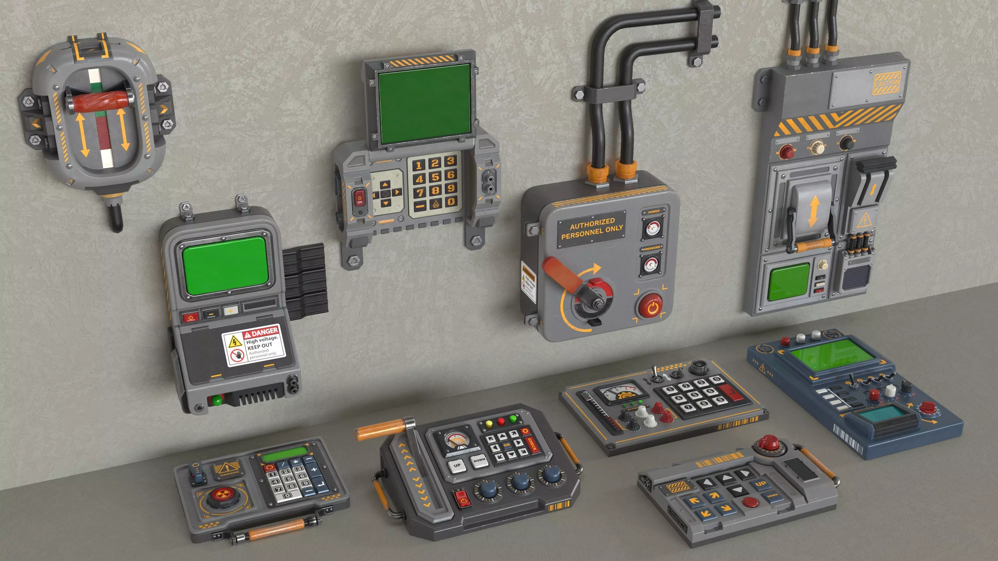 10 low poly textured(PBR) control panels