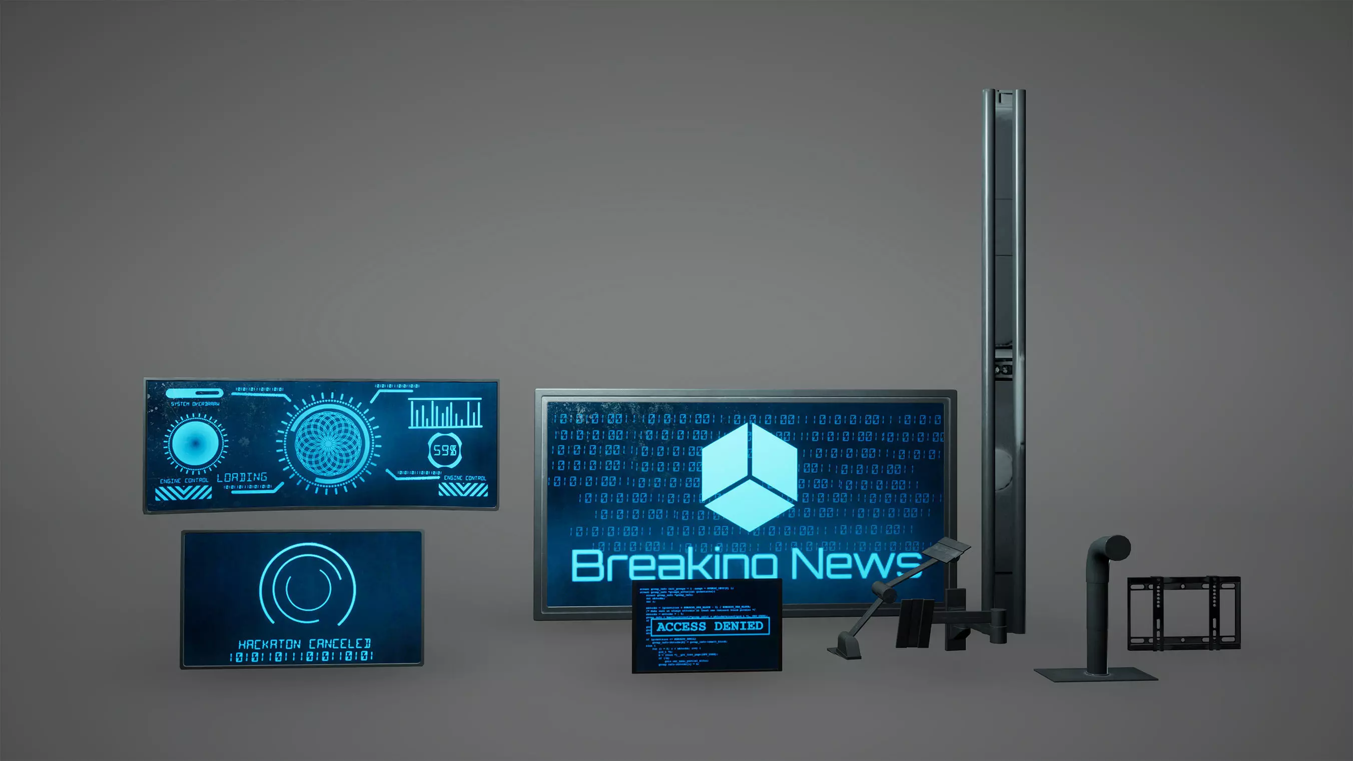 Cyberpunk Sci fi Monitor Set Low Poly Game Ready Low-poly 3D model