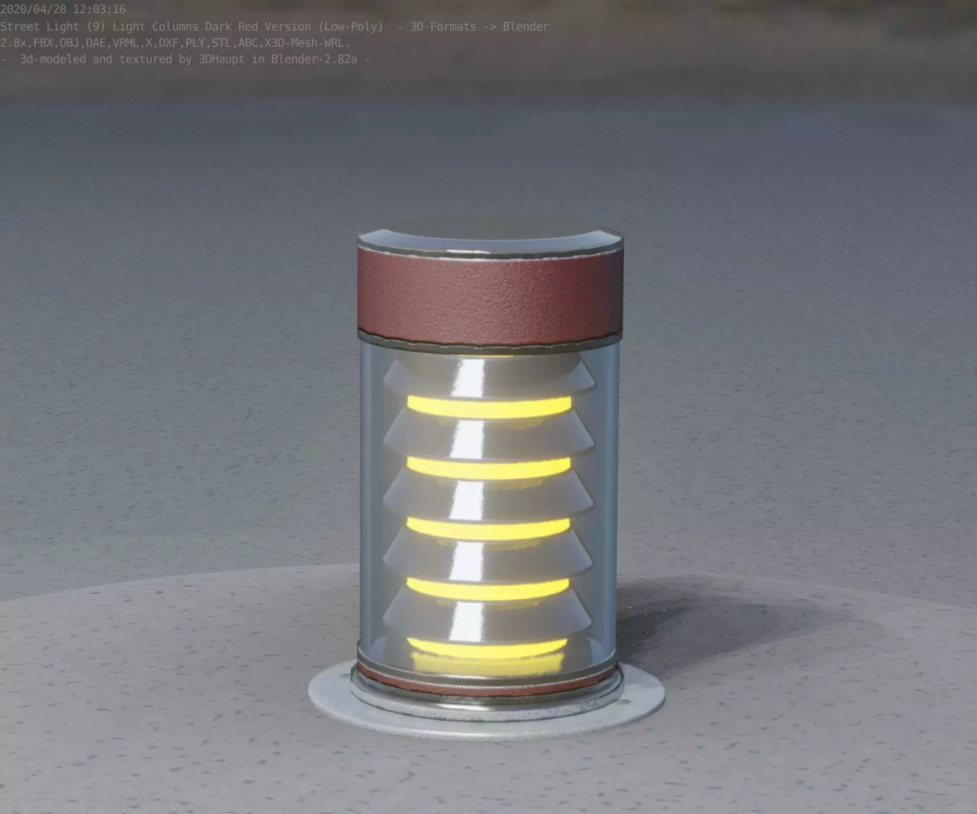 Dark Red Light-Column -3- Street-Light 9 Low-poly 3D model