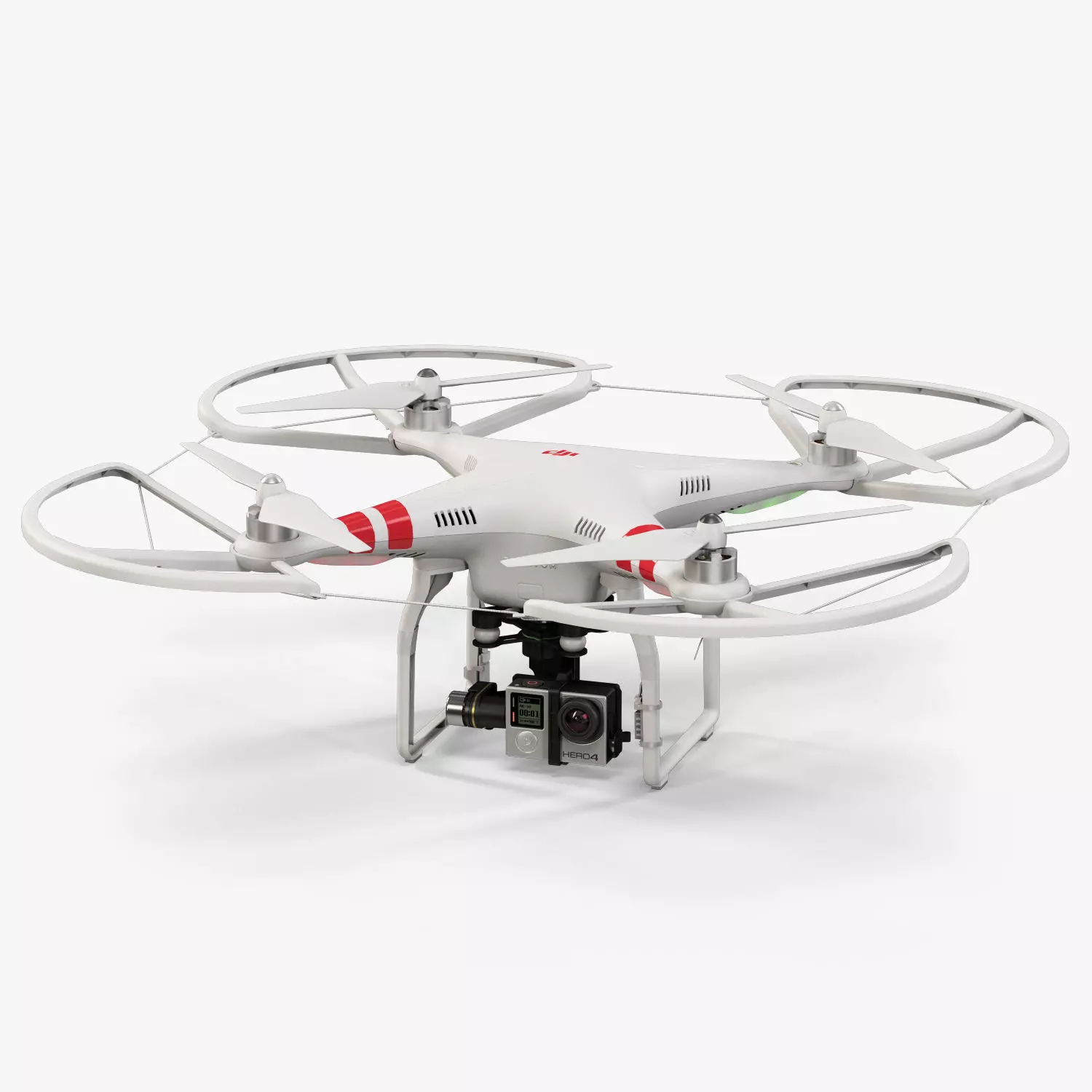 • Let me present to you high-quality low-poly 3D model DJI Phantom 2 Quadcopter with Propeller Guard, Zenmuse H4-3D gimbal for GoPro Hero4 or 3 and GoPro HERO4 action camera. This model can be used in various fields 3D Graphics such as game development, advertising, interior design, motion picture art, visualization, etc... Modeling was made with ortho-photos of real quadcopter, camera and gimbal that is why all details of design are recreated most authentically.