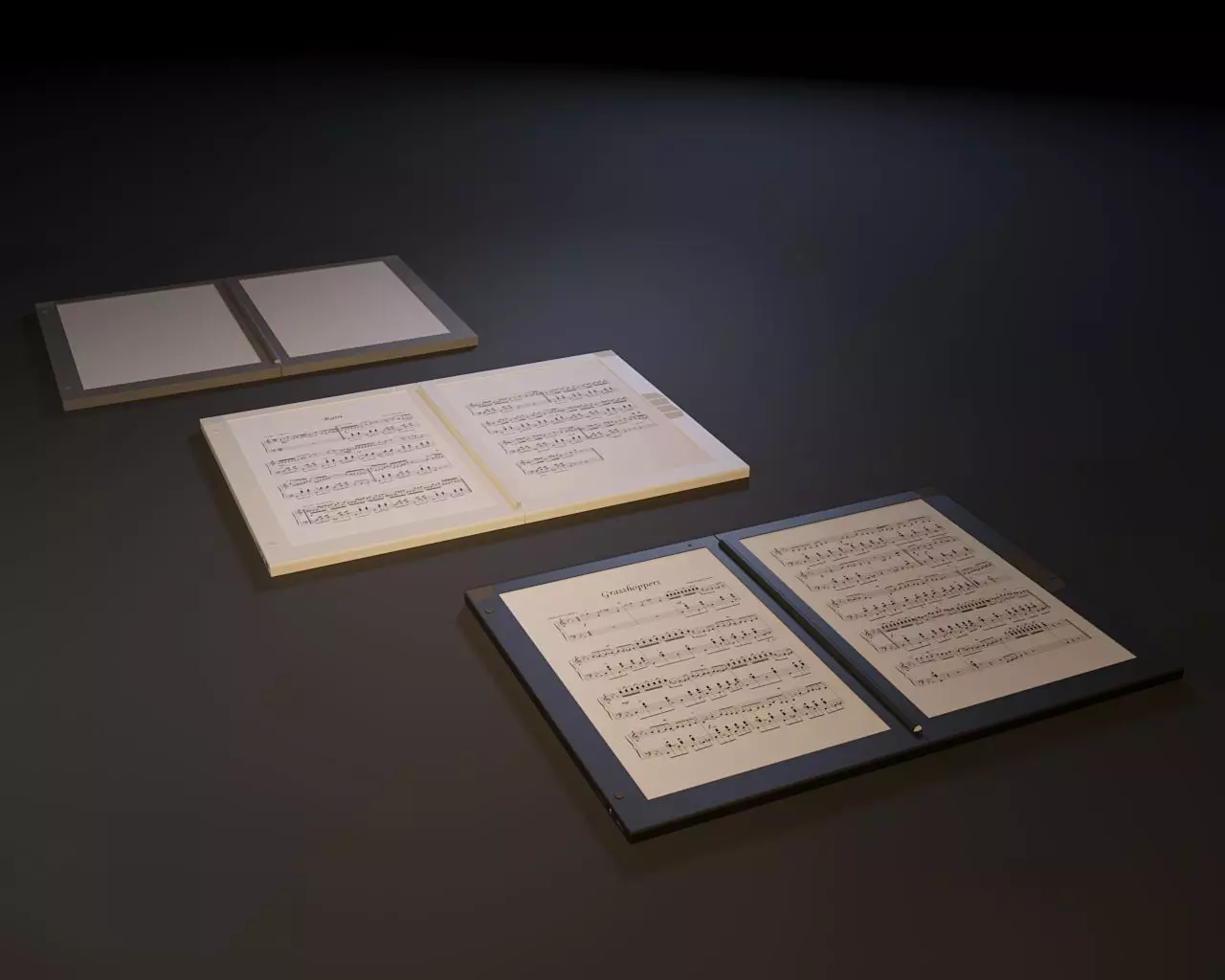 E-books in three colors. To display musical notes. The models use musical pieces. The author of these works is my father. Allowed to place these works in these models.