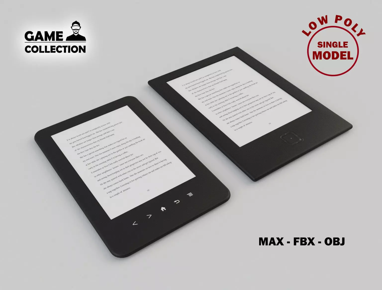 Models of two e-readers with standard size and without any kind of brand to be used in 3D scenes. Basic low poly models that can also be used in videogames or applications. 3D Studio Max, FBX and OBJ format.
