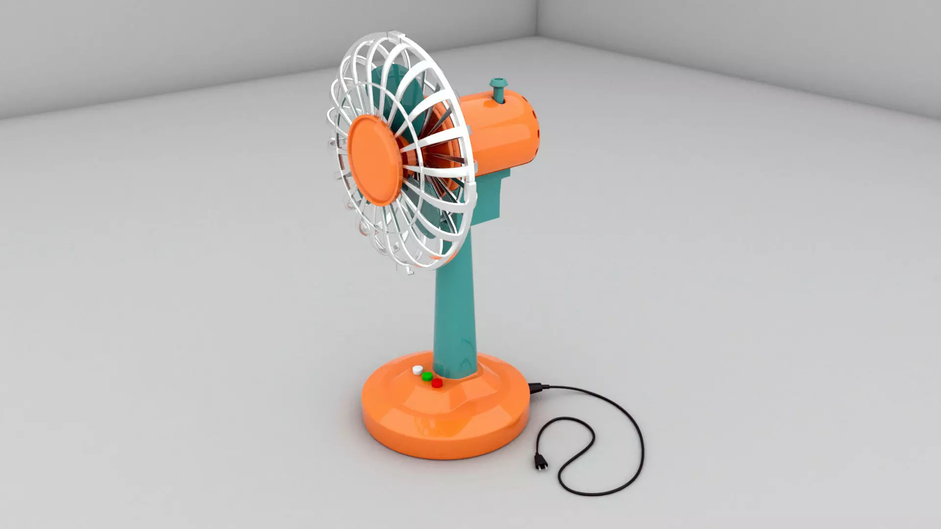 Fan 3 d model orange and Low-poly 3D model