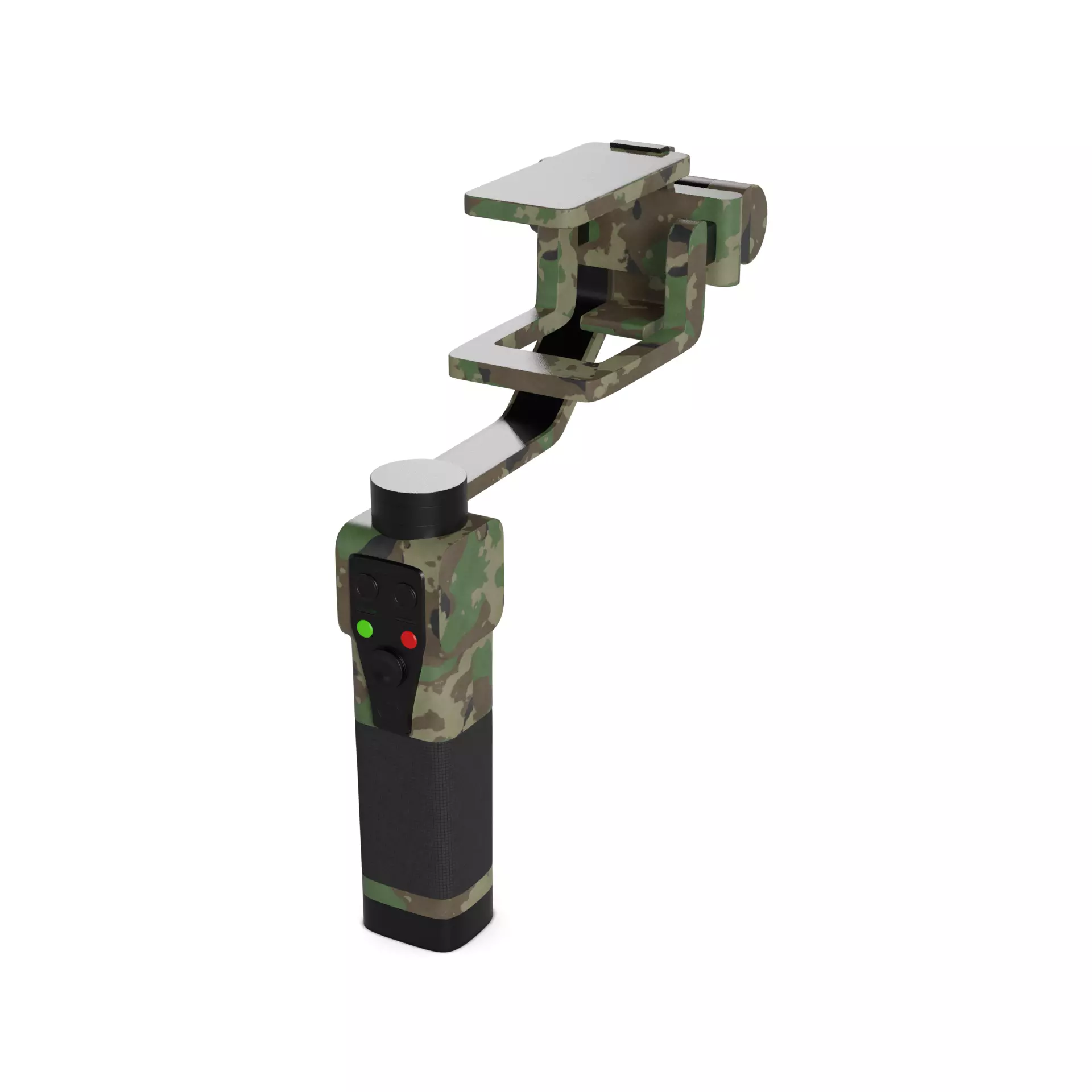 Boasting a rugged yet stylish design, this handheld gimbal for photography and videography features a durable camo pattern exterior, ensuring reliable performance for capturing adventurous footage in the current timeline.
