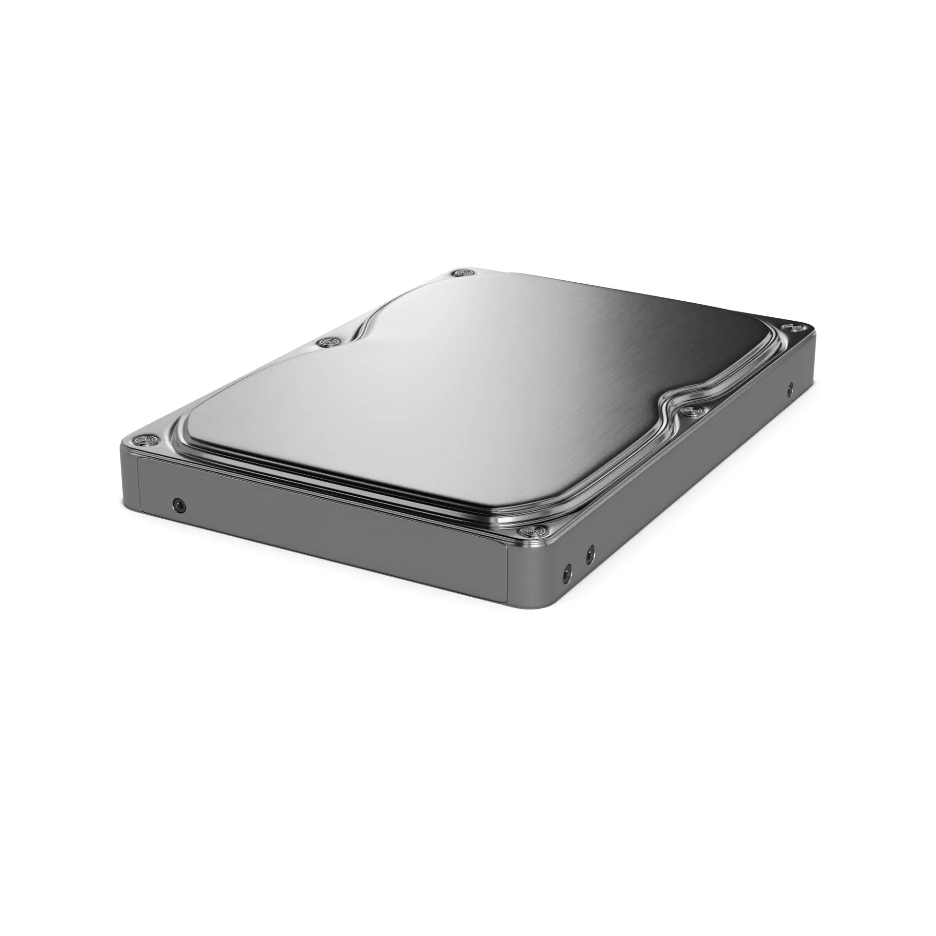 An elegant silver hard disk drive with a metallic sheen, showcasing a rectangular design and a polished surface, ideal for enhancing storage capacity in contemporary computer systems.