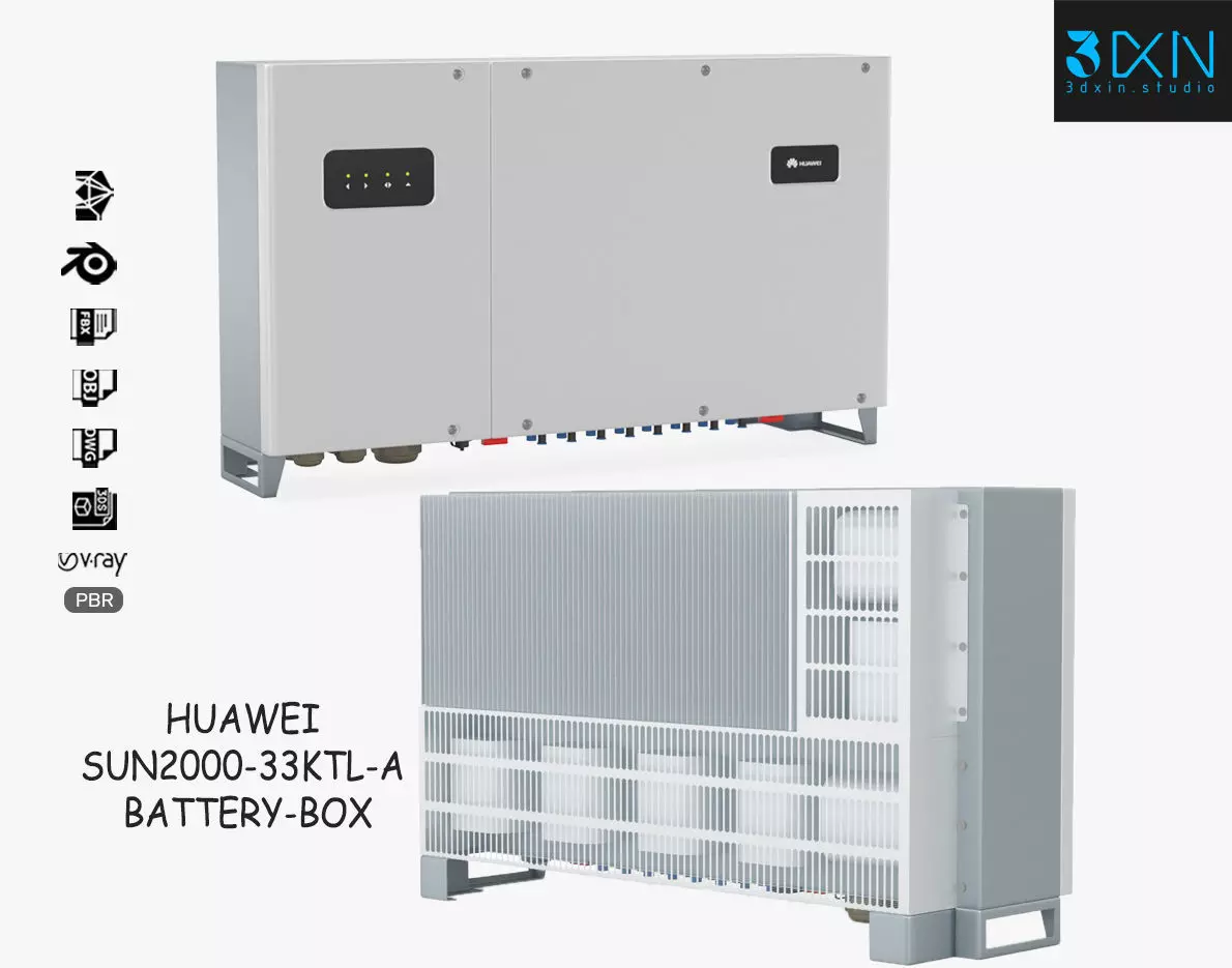 HUAWEI SUN2000-33-KTL-A BATTERY-BOX is a high quality, photo realistic 3d model that will enhance detail and realism to any of your rendering projects. The model has a fully textured, detailed design that allows for close-up renders, and was modeled in 3ds Max 2018 also has 3ds Max 2015 version and rendered with V-Ray. Renders have no post-processing.