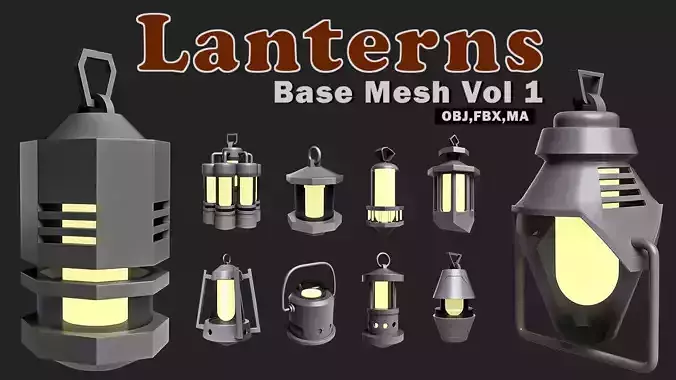 This pack includes 20 lanterns 3d models as base mesh to add more detail in your 3d projects.