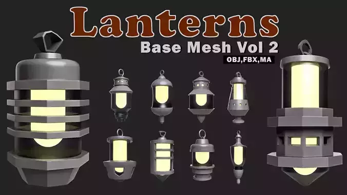 This pack includes 20 lanterns 3d models as base mesh to add more detail in your 3d projects.