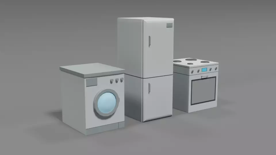 This is a low poly 3D model of 3 household electronic devices. The low poly devices was modeled and prepared for low-poly style renderings, background, general CG visualization presented as 3 meshes with quads.
