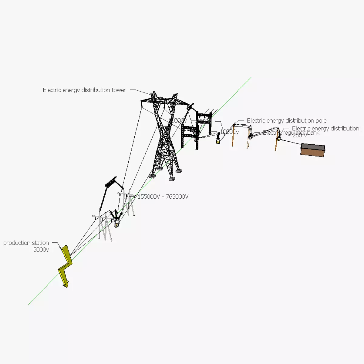 The model has material settings that define how surfaces look (color, shine, transparency, etc.).