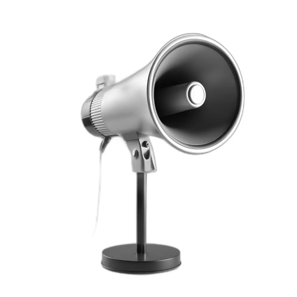 This professional 3D model meticulously recreates a classic metallic megaphone, complete with a sturdy stand, designed for exceptional visual fidelity. Its sleek, silver finish and detailed construction make it a versatile asset for a wide array of digital projects. The model is perfect for enriching game environments, serving as a functional prop in AR/VR experiences, or adding historical accuracy to architectural visualization scenes. Furthermore, it is ideally suited for high-quality static renderings in film, animation, and digital art compositions, offering a touch of vintage appeal. The clean, optimized topology ensures smooth performance in real-time applications while maintaining intricate details for close-up shots. This model is meticulously UV unwrapped, providing a solid foundation for advanced texturing workflows, including PBR materials to achieve realistic metallic reflections and subtle surface imperfections, ensuring it looks great under any lighting conditions. The model's modular nature allows for easy integration into existing scenes or standalone display. Its precise scale and proportions contribute to a believable presence within any virtual setting. Supported formats include GLB, OBJ, FBX, USD, DAE, STL, ABC, and PLY, ensuring broad compatibility across various 3D software and engines. This asset is ideal for creators looking for a reliable, high-quality prop that can be used out-of-the-box for immediate results or further customized to meet specific project demands. Whether you need a striking focal point or an authentic background element, this megaphone model delivers professional-grade quality and flexibility for your creative endeavors. Its detailed design also makes it suitable for customization or high-resolution renderings.