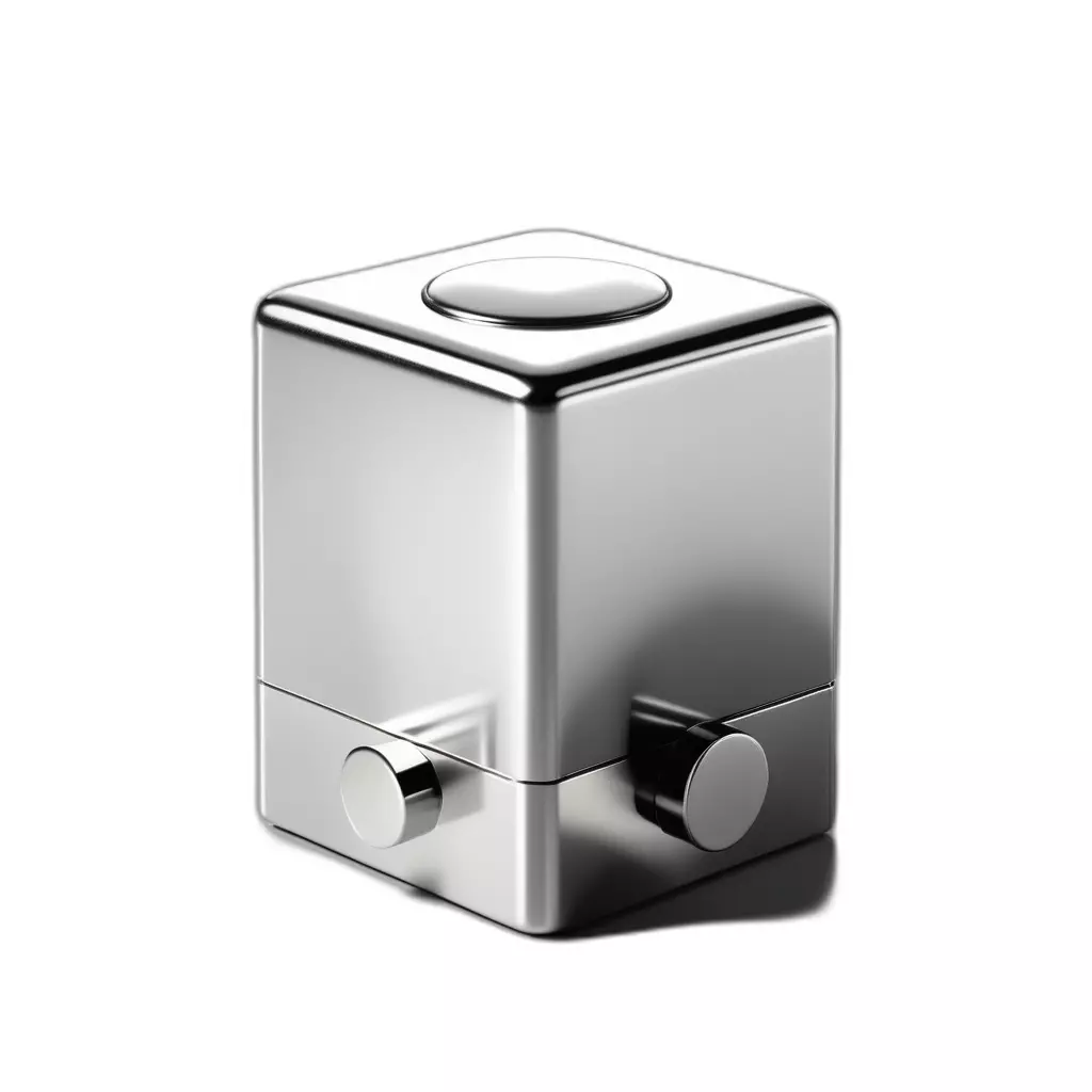 This 3D model represents a sleek, modern, and minimalist control unit or abstract futuristic device. Featuring a highly polished chrome finish, its clean lines and reflective surfaces make it a striking visual element. The model includes a prominent circular button on the top surface and two smaller circular knobs on the front, suggesting interactive functionality. This versatile asset is perfect for integration into sci-fi environments, futuristic user interfaces, or as a sophisticated prop in various game development projects. It can also enhance architectural visualizations, particularly in smart home or contemporary interior scenes. Its optimized geometry ensures suitability for real-time applications like augmented reality (AR) and virtual reality (VR) experiences, while also being robust enough for high-quality static renderings and product presentations. The model is meticulously crafted with clean topology, offering sharp edges with subtle bevels for a realistic look and feel. It is fully UV unwrapped and comes with high-quality PBR textures, allowing for accurate material representation across different rendering engines. Supported file formats include GLB, OBJ, FBX, USD, DAE, ABC, STL, and PLY, ensuring broad compatibility for various 3D software and platforms. This asset is ready to be dropped into your next project, adding a touch of modern elegance and functionality to any digital scene.