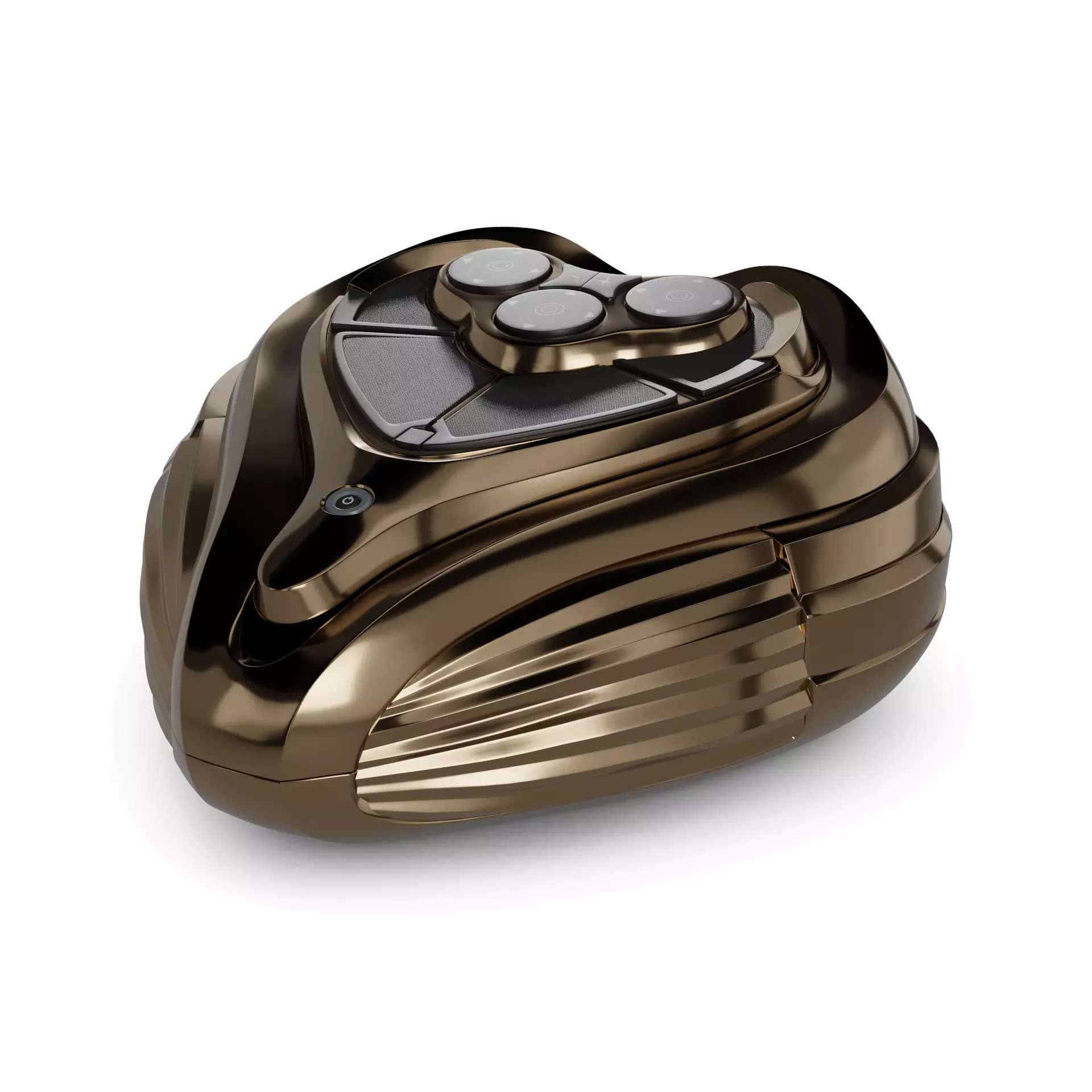A cutting-edge muscle stimulator in a metallic gold tone, equipped with intelligent technology for precise muscle targeting and customizable workout routines.