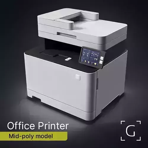 This high-quality mid-poly 3D model represents a modern multifunction office printer, ideal for close-to-mid-range visualization. Featuring a realistic design with clean geometry, this model includes detailed elements such as a touchscreen control panel, paper tray, and scanner unit. Optimized for real-time rendering, AR/VR applications, architectural visualization, video games and product staging. All objects are properly named and grouped for easy scene integration.
