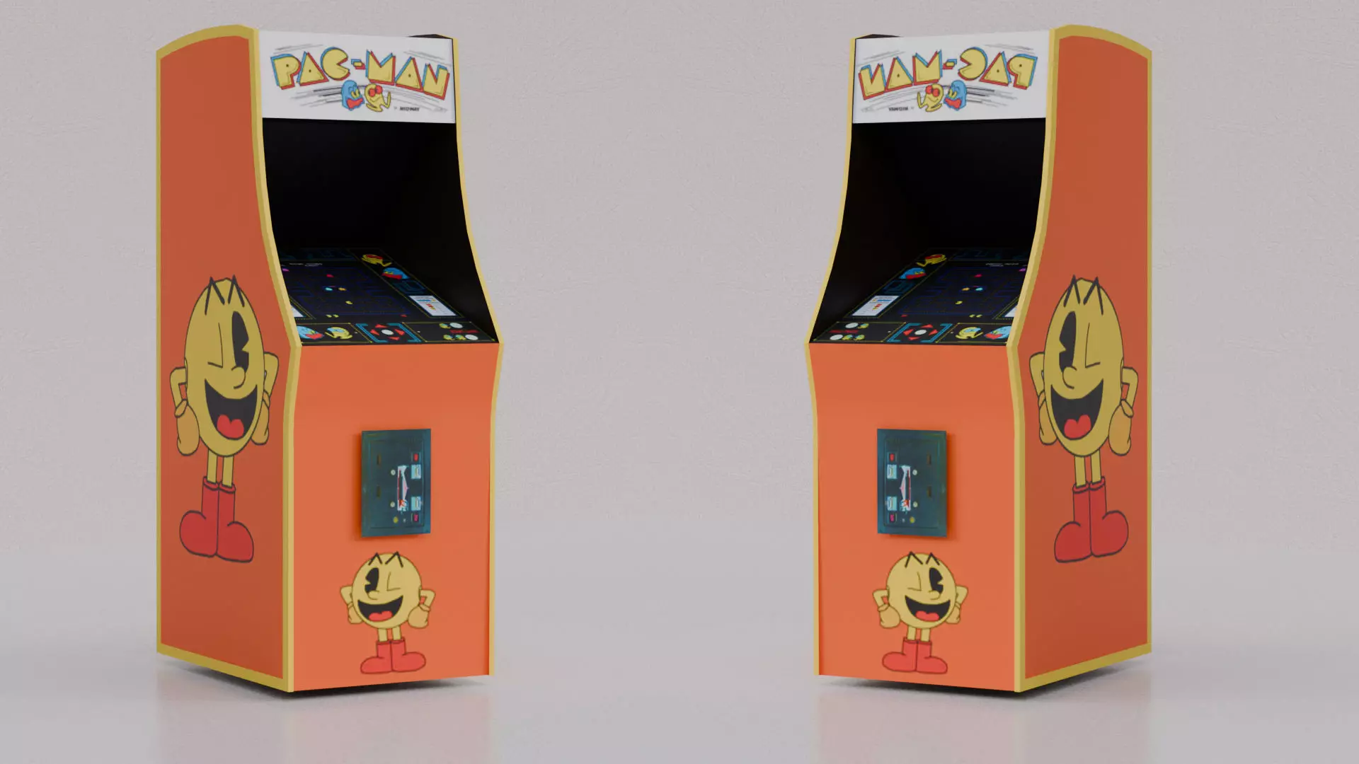 This is a meticulously crafted, low-poly 3D model of a classic Pac-Man arcade cabinet, designed to bring a touch of retro gaming nostalgia to any scene. The model is optimized for performance, featuring 201 faces and 178 vertices, making it ideal for real-time applications like games, AR/VR, and mobile projects. It includes two texture variations—classic yellow and a vibrant orange—to add customizable options to your project.