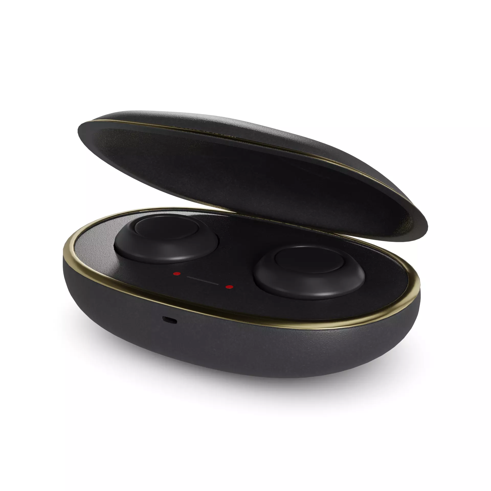 Noise-Canceling Headphones: These noise-canceling headphones come in a premium-looking box made of textured black cardboard. The box has a magnetic closure and opens to reveal the headphones neatly folded inside. The headphones themselves are made of high-quality materials, with a matte black finish and soft cushioned ear cups. They feature active noise cancellation technology and offer immersive sound quality. The packaging includes a label with the headphones' specifications, such as battery life, frequency response, and Bluetooth version.
