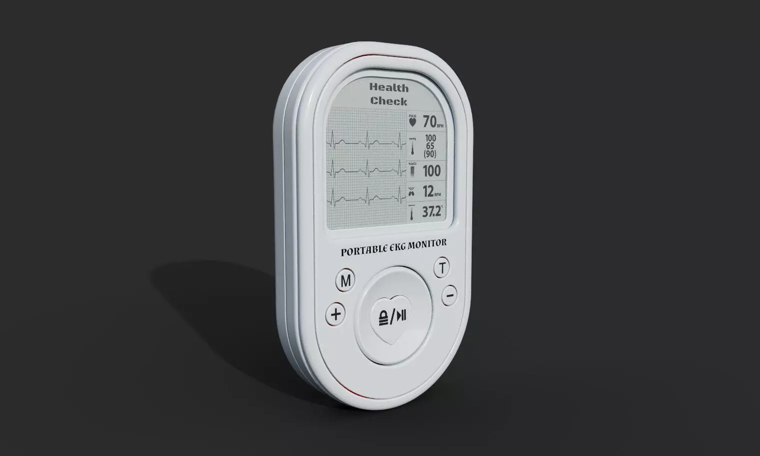 A Portable EKG Monitor in matte white casing, equipped with advanced sensors and a user-friendly interface, suitable for health-conscious individuals in the current timeline.