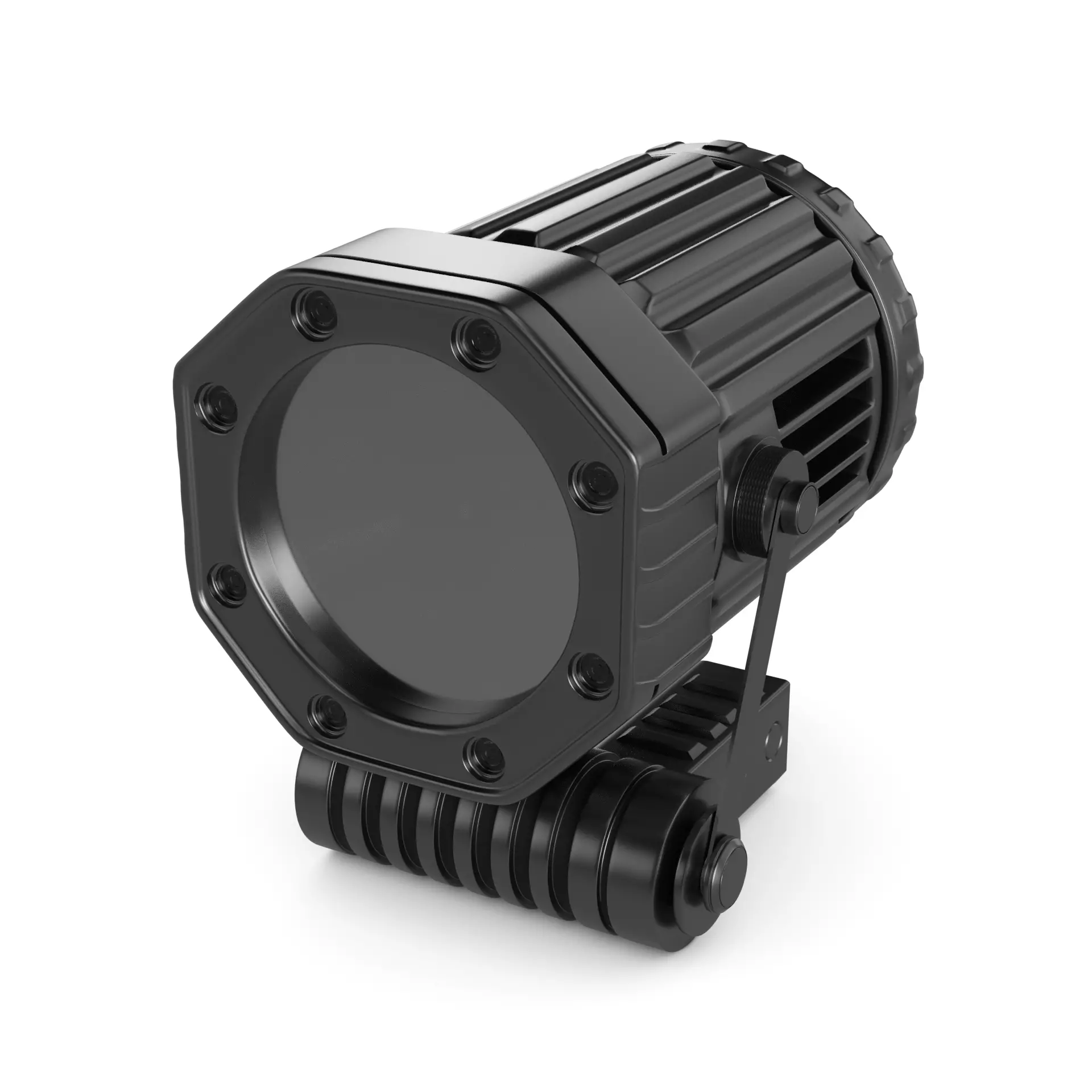 An outdoor light with a modern design in a metallic silver color, crafted for durability and performance. The long-lasting battery life and adjustable settings make it a versatile companion for all adventures.