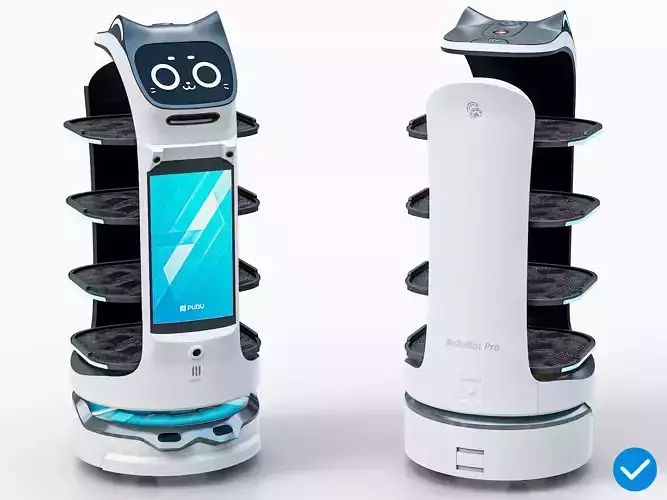 Super realistic high detailed PuduBot Restaurant Service Robot Waitor BellaBot Pro White 3D Model with high resolution textures and PBR maps.8192x8192 .png textures with super high detailed materials included!The model has clean topology and it is good in any iteration of smoothing/subdiv.Game ready model - can be used in game engines and realtime scenes.Unity, Cryengine, Lumberyard, Unreal Engine etc. friendly.Rendered with the Marmoset Toolbag 5;Blender 4.5.3 version file with Cycles and EEVEE support included.Any 3D's max version friendly;